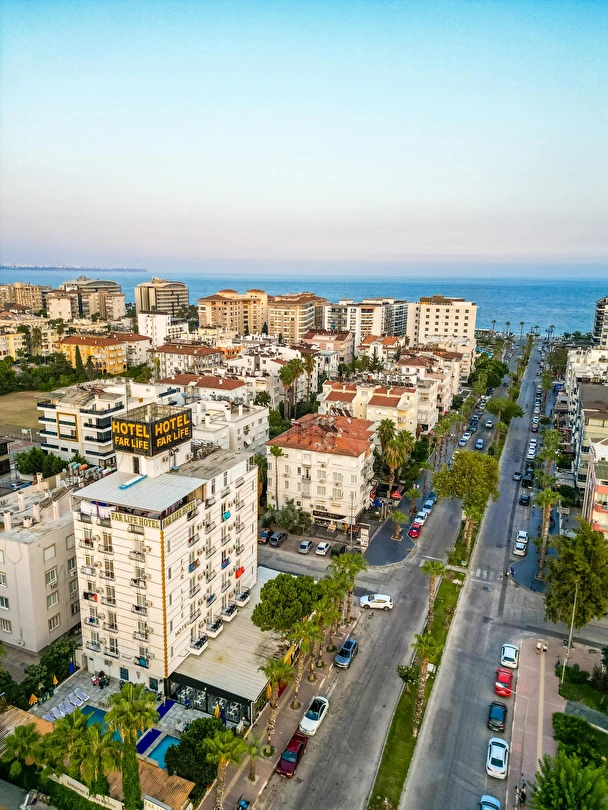 Far Life Hotel, Antalya’nın dünyaca ünlü Konyaaltı'nda, modern tasarımı ve samimi hizmet anlayışını birleştiren seçkin bir butik oteldir. Hem denizin tadını çıkarmak isteyen tatilciler hem de şehrin nabzını tutmak isteyen gezginler için ideal bir konaklama noktasıdır.