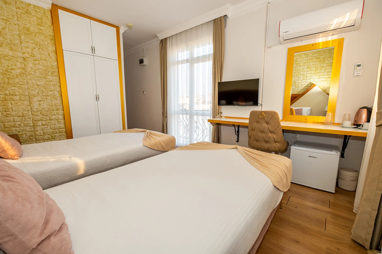 Üst Düzey Donanım: Her odada ücretsiz yüksek hızlı Wi-Fi, LCD TV, klima, minibar, emanet kasası ve modern banyo buklet ürünleri.