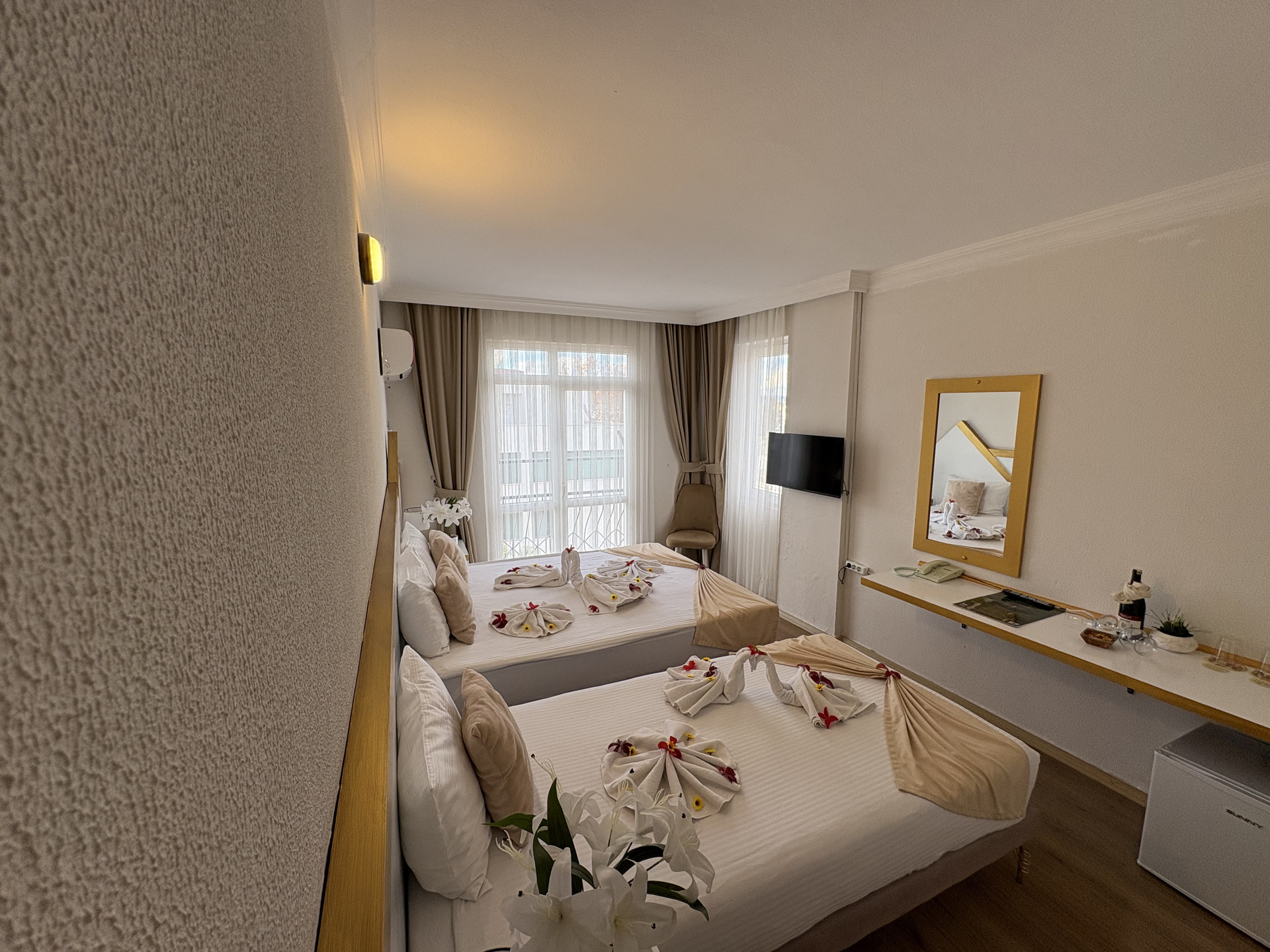 Farklı Oda Seçenekleri: İhtiyacınıza göre tasarlanmış Standart, Triple ve aile konaklamalarına uygun geniş oda alternatifleri.