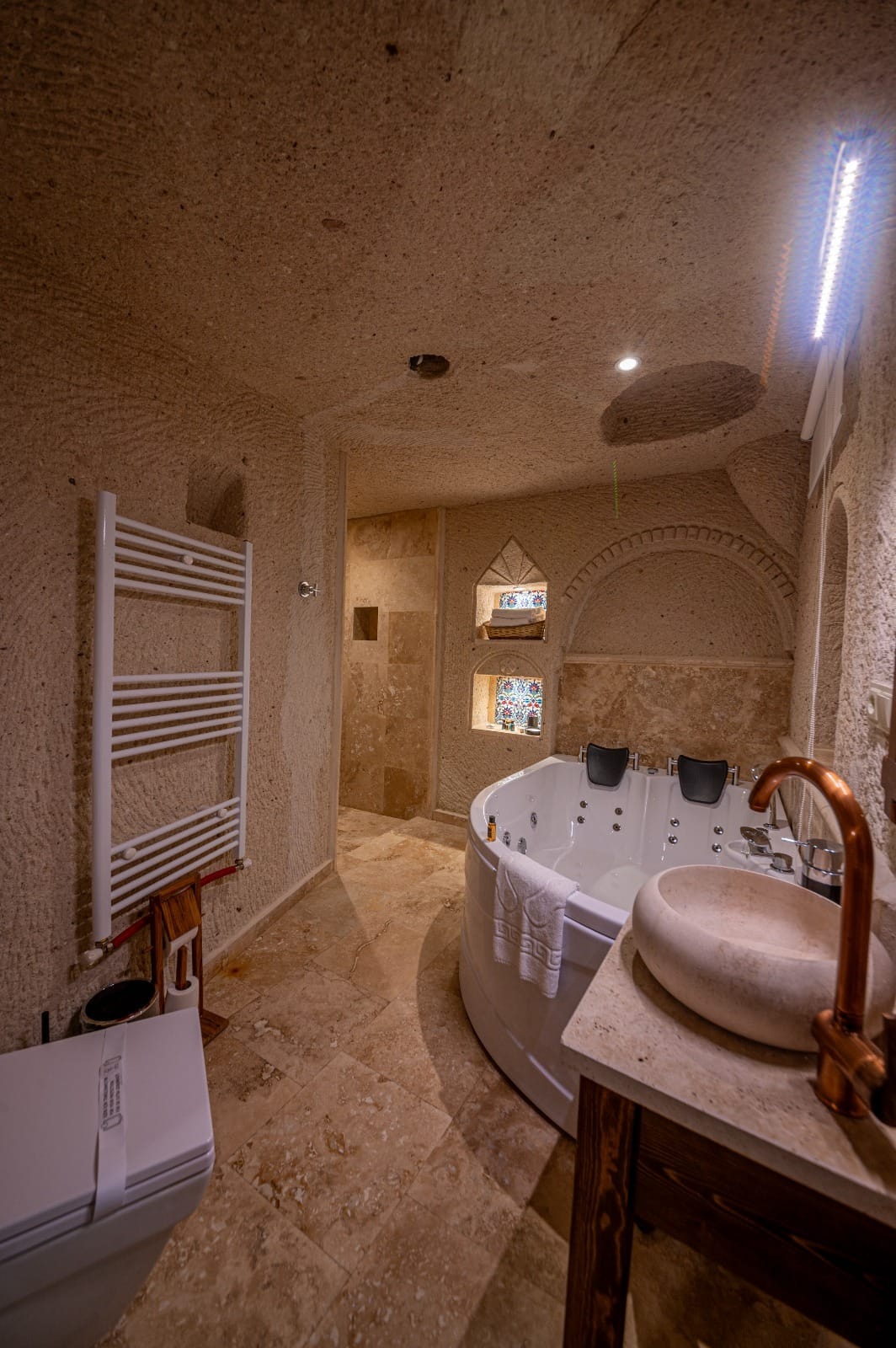 Farmer Cave House, Kapadokya’nın eşsiz doğası içinde, geleneksel mağara mimarisini modern konforla buluşturan özel bir konaklama deneyimi sunar. Doğal kaya yapısına özenle oyulmuş odaları, sade ve şık dekorasyonu ile misafirlerine huzurlu bir atmosfer sağlar. Yerel dokunuşlarla hazırlanan kahvaltısı, samimi ev sahipliği ve sakin ortamıyla şehir kalabalığından uzaklaşıp dinlenmek isteyenler için ideal bir adres sunar. Kapadokya’nın vadilerini, tarihi noktalarını ve balon manzaralarını keşfetmek isteyen misafirler için konumu itibarıyla da büyük bir avantaj sağlayan Farmer Cave House, kendinizi evinizde hissedeceğiniz unutulmaz bir konaklama vadediyor.