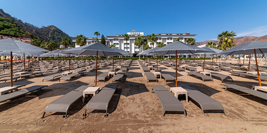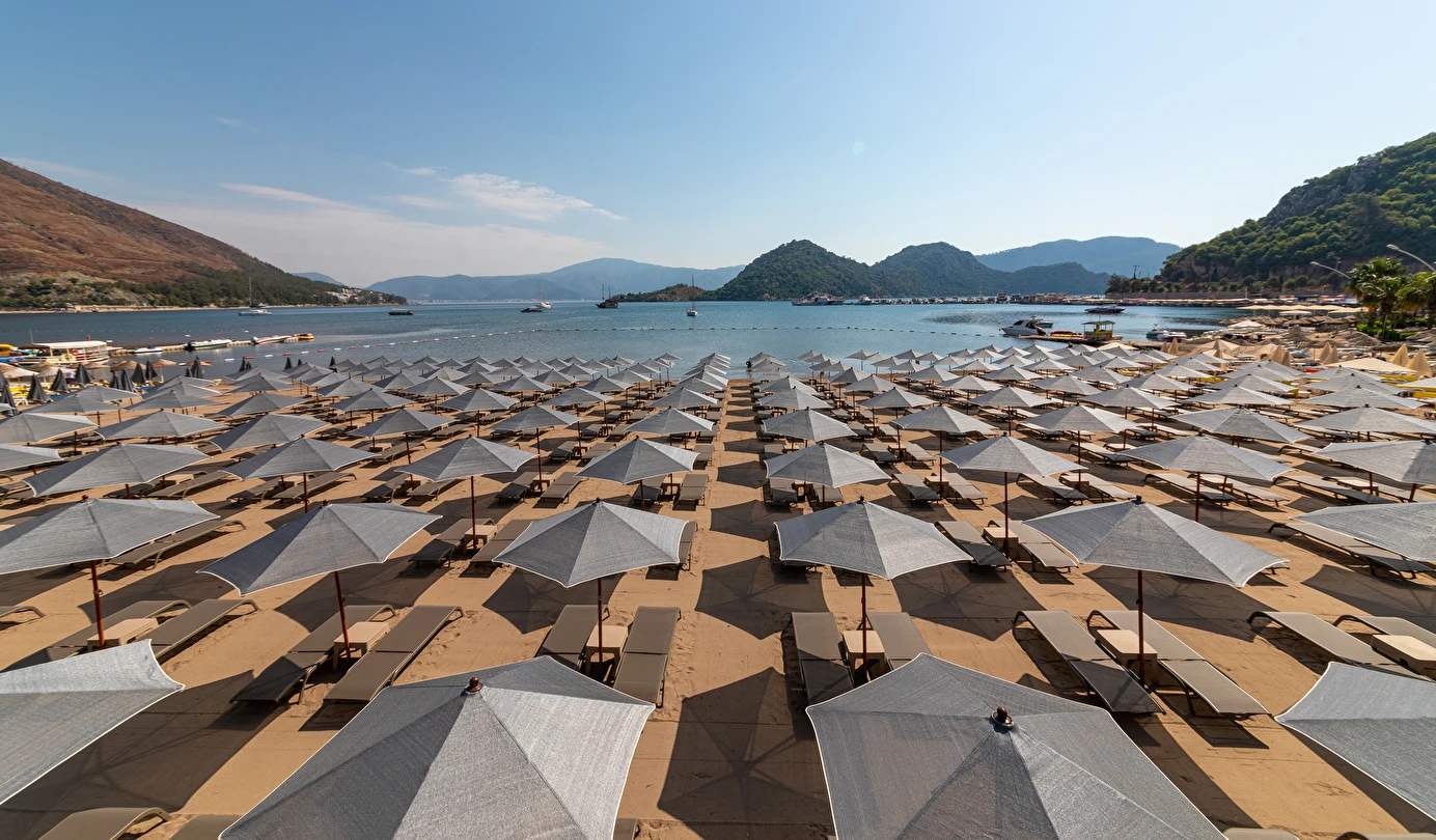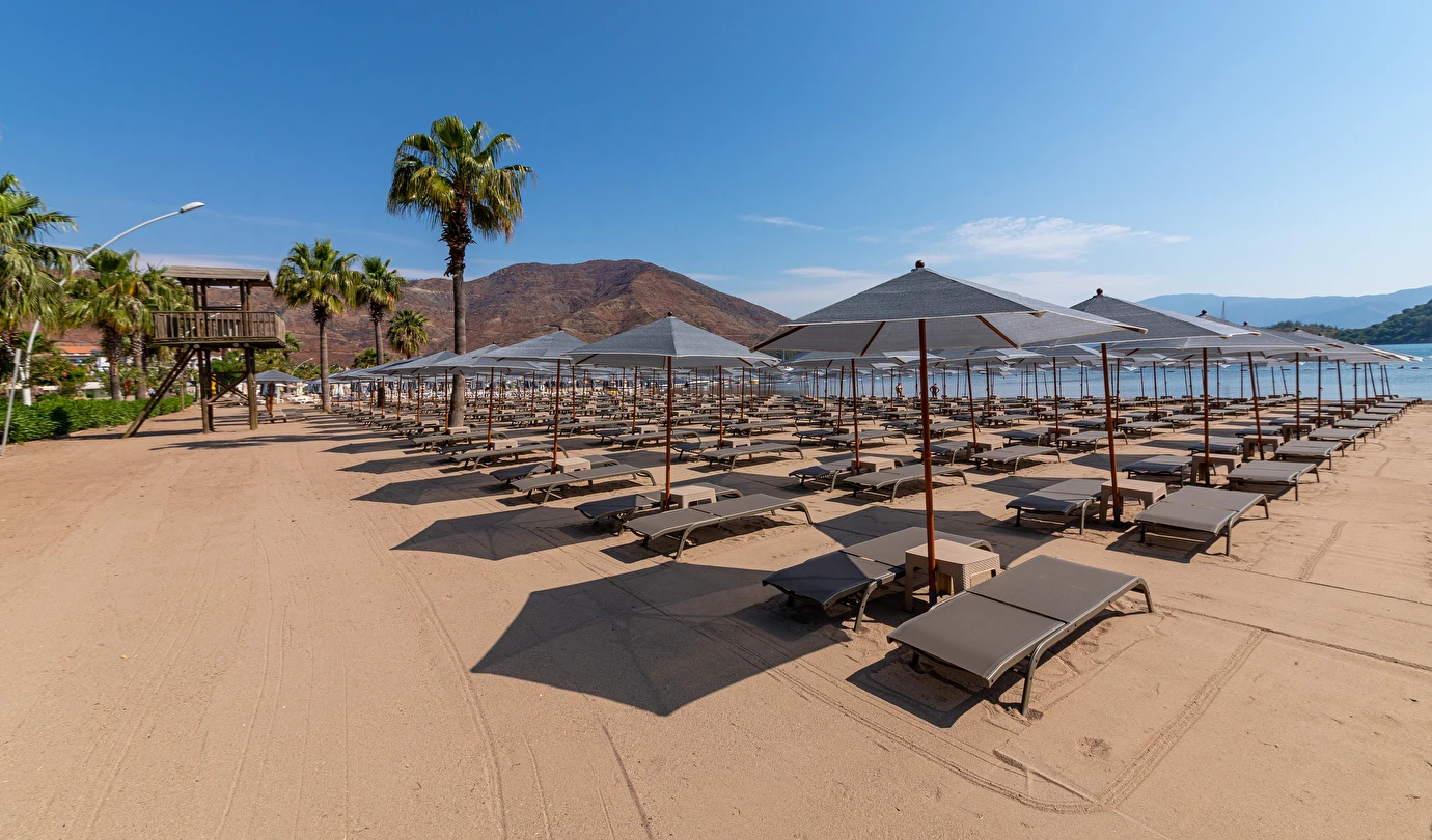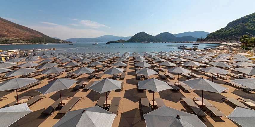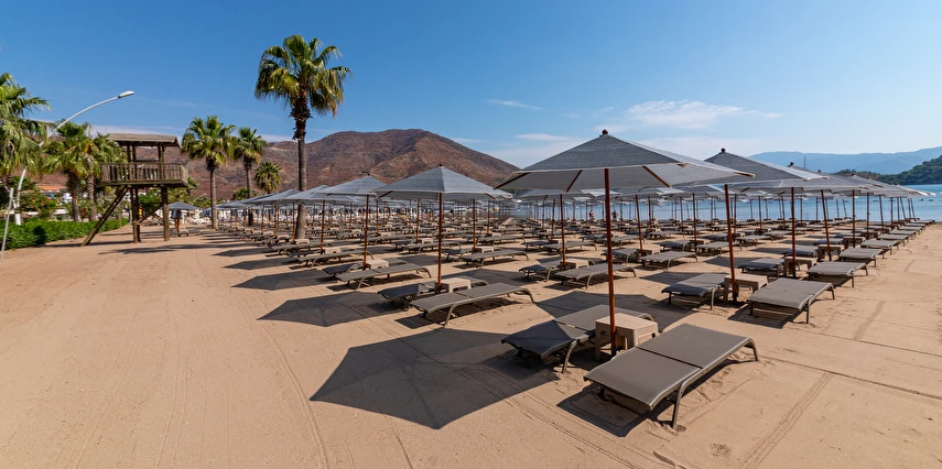 Plaj; Tesis “denize sıfır” konumdadır ve İçmeler Sahili’nde en uzun sahil şeridine sahip olan tek tesistir. Şemsi, şezlong, şezlong minderi ve plaj havlusundan misafirler ücretsiz yararlanabilirler.