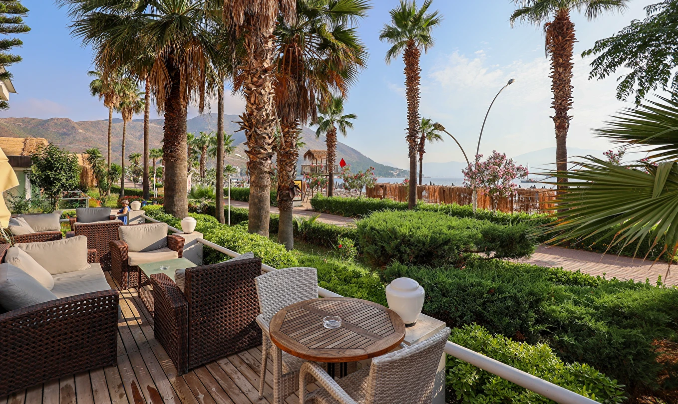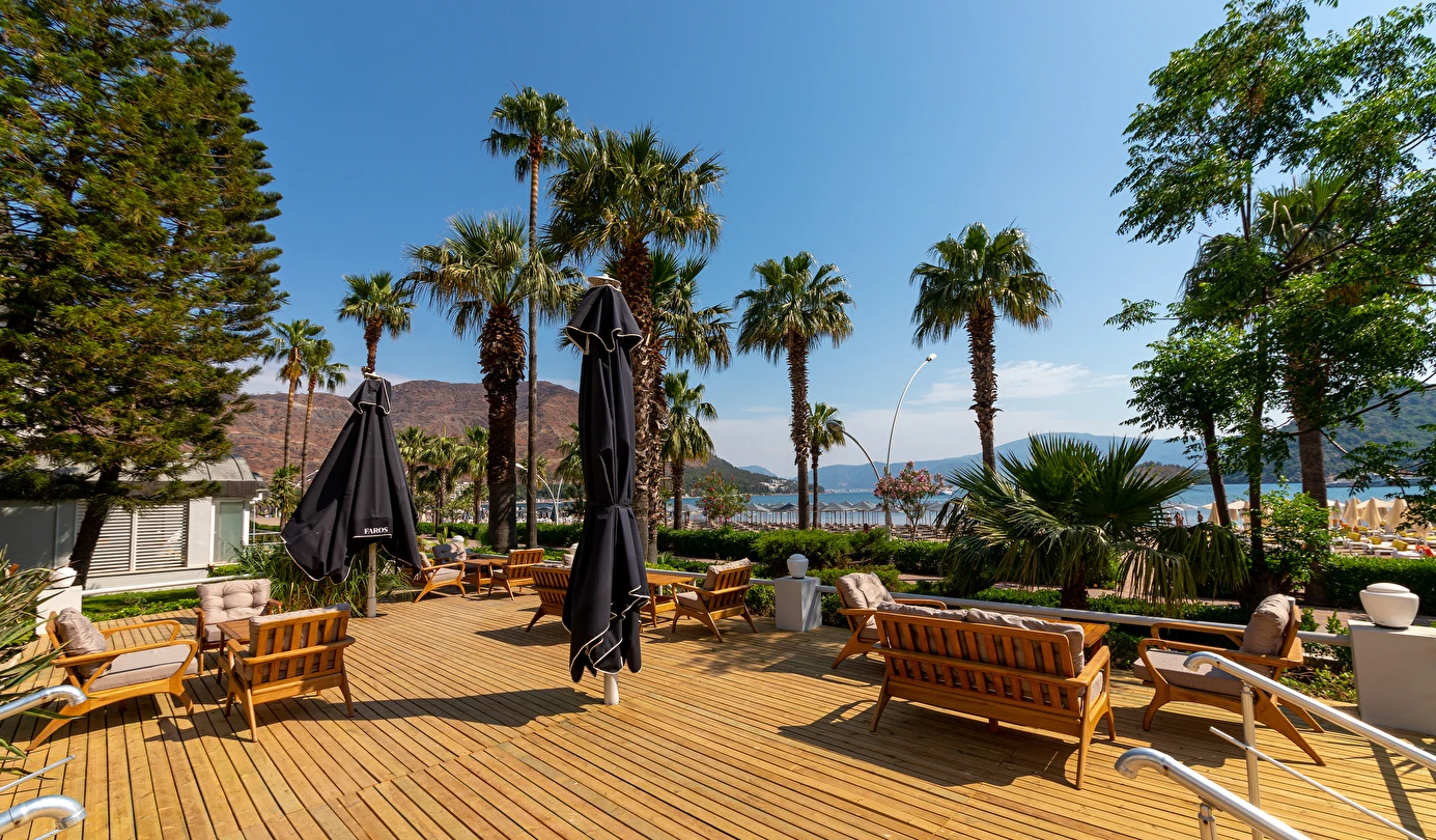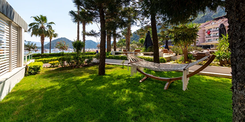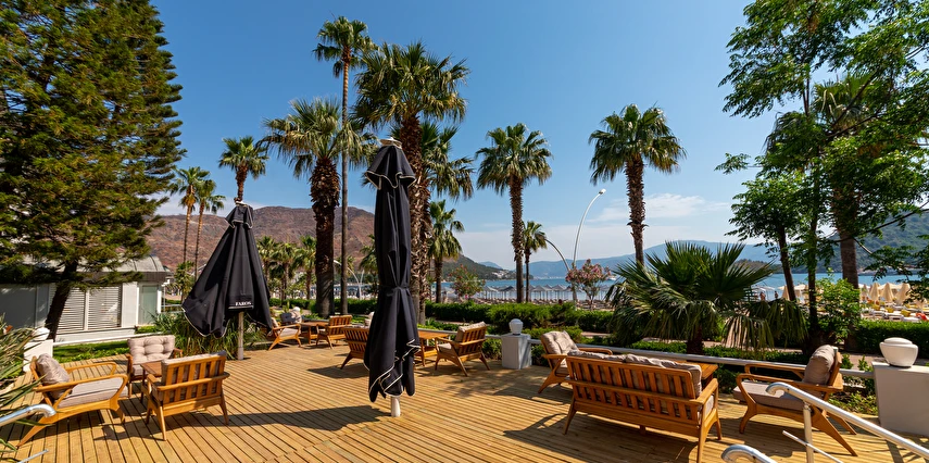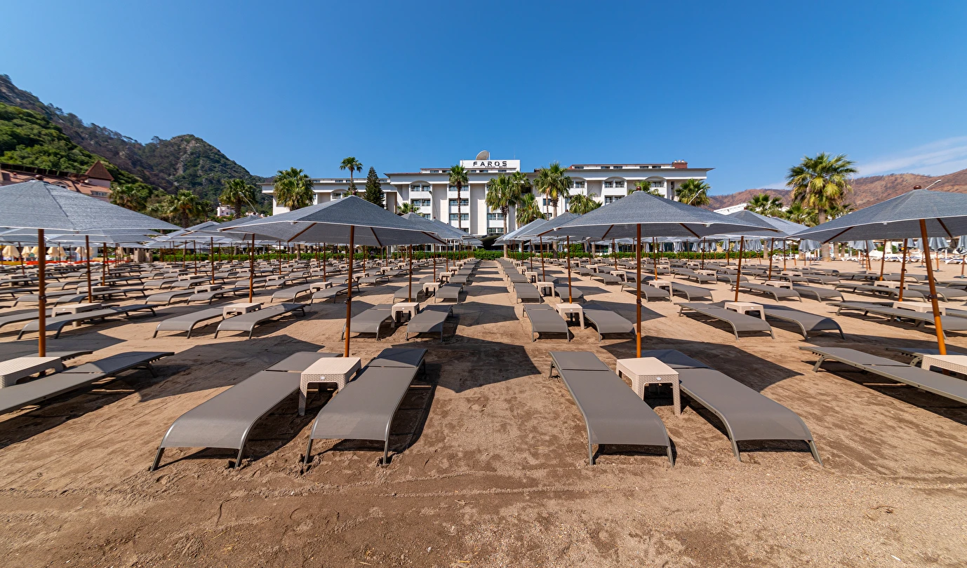 Plaj; Tesis “denize sıfır” konumdadır ve İçmeler Sahili’nde en uzun sahil şeridine sahip olan tek tesistir. Şemsi, şezlong, şezlong minderi ve plaj havlusundan misafirler ücretsiz yararlanabilirler.