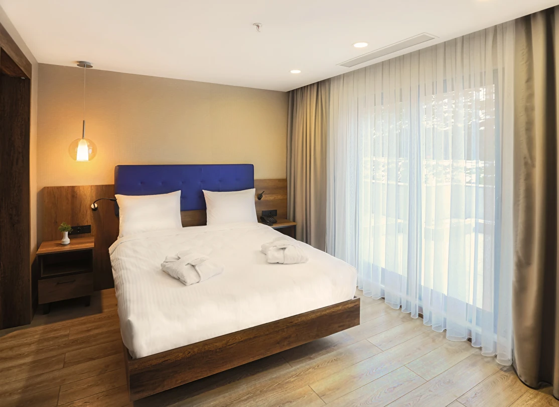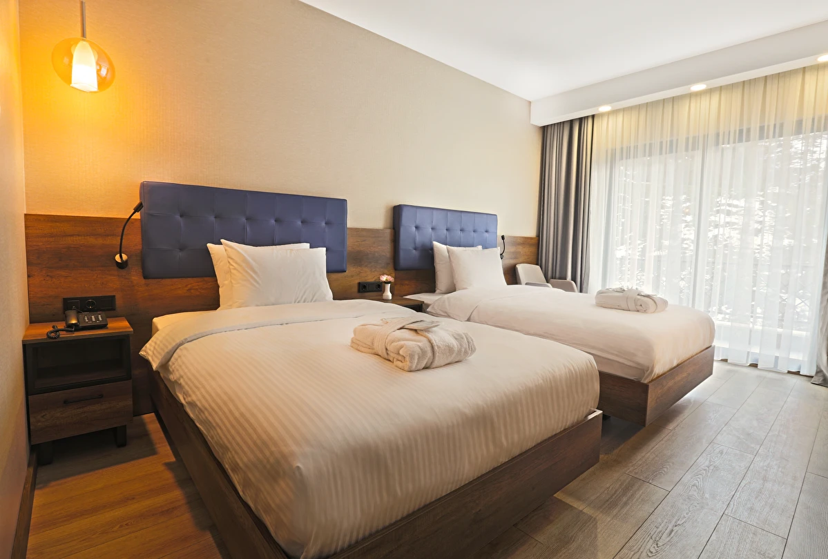 Tesisimizde 63 Standart Oda, 9 Deluxe Oda, 7 Suit Oda, 1 Engelli Odası olmak üzere toplam 80 oda bulunmaktadır.