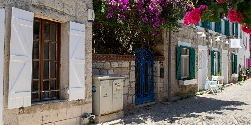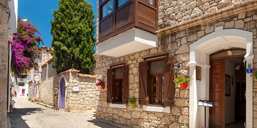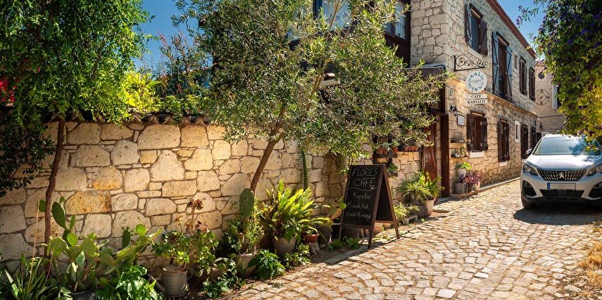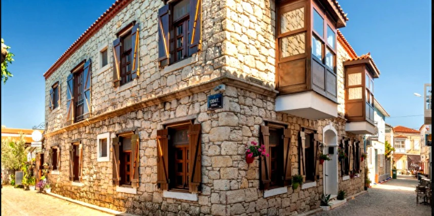 Alaçatı'nın tam merkezinde, tarihi çarşıya ve tüm mekanlara yürüyerek 1-5 dakika uzaklıktadır.