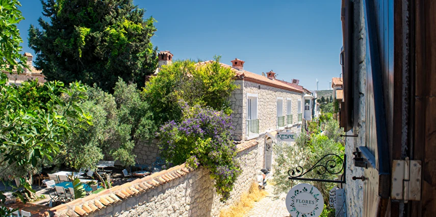 Flores Hotel Alaçatı, Türkiye’nin en gözde ve en sevilen tatil lokasyonlarının başında gelen Alaçatı’nın tam merkezinde, tarihi çarşının içerisinde yer almaktadır. Tüm gözde mekanlara yürüme mesafesinde olan otelimiz, odalarının çift camlı ve ses izolasyonlu olması sayesinde geceleri sessiz ve huzurludur.