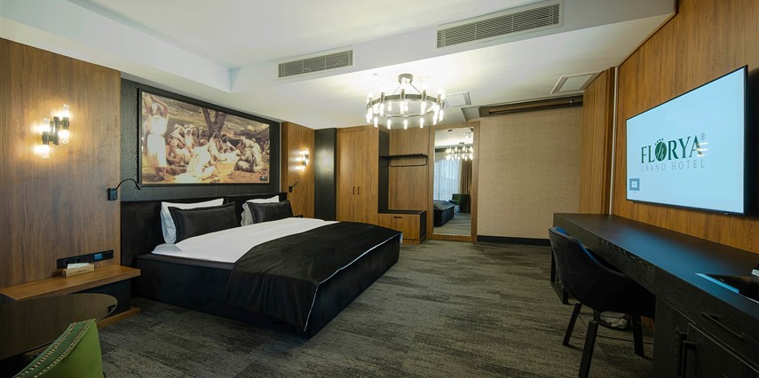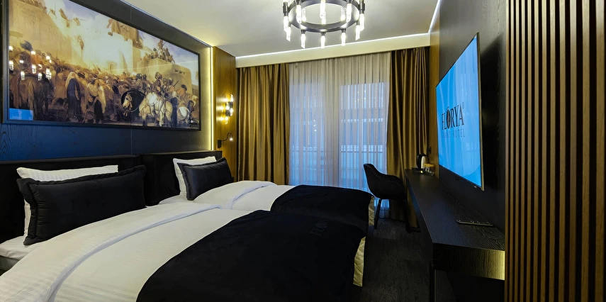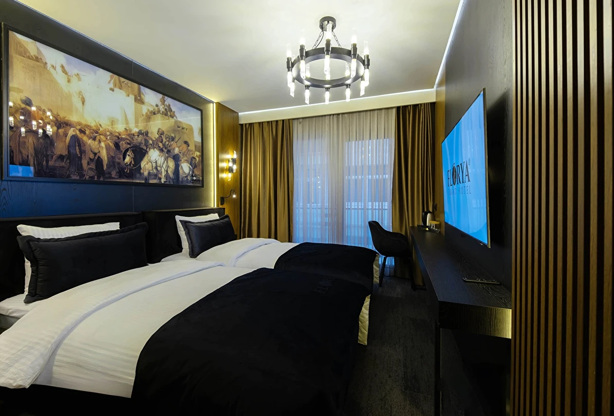 Konforu ve şıklığı bir arada sunan odalarımız, modern dekorasyonuyla misafirlerimize huzurlu bir ortam sağlar.
