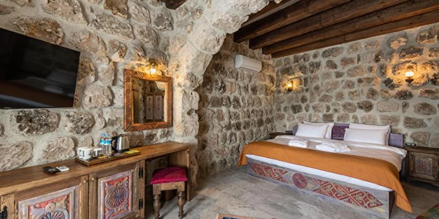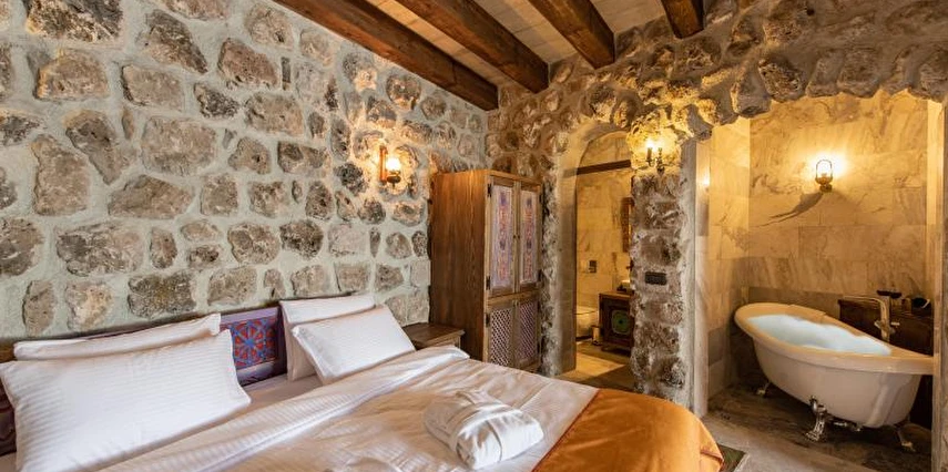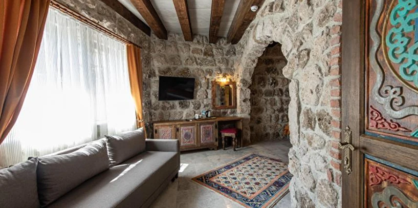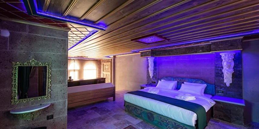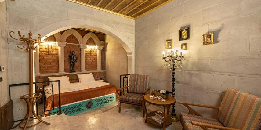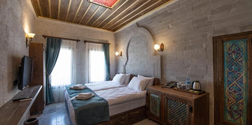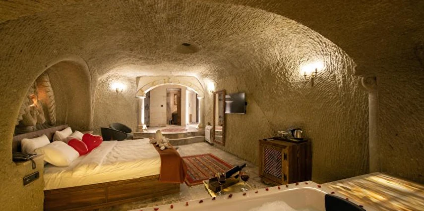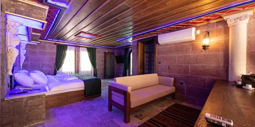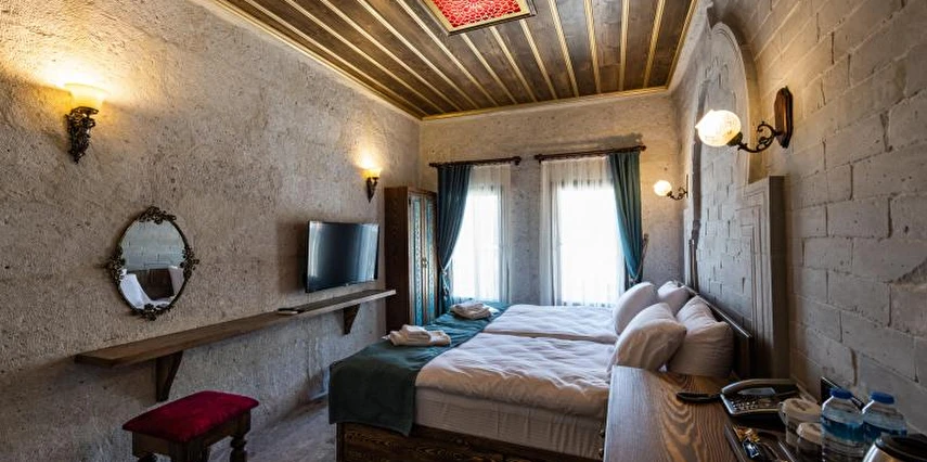 Birçok çağ ve dönemde önemli bir yerleşim yeri olan Kapadokya’nın tarihle iç içe sokaklarında yürürken kendinizi adeta bir zaman tünelinde hissetmeniz mümkündür. Otelimiz sizin bu zaman tünelinde kentin ruhuna uygun bir mekanda konaklayabilmenizi sağlayacaktır.Dileyen misafirler için havalimanı ulaşım hizmeti sunan tesiste araç kiralama imkanı da mevcut. Bisiklet kiralayarak yakın çevreyi keyifle gezebilirsin. . Tesisin ücretsiz olarak misafirlere sunduğu balayı konsepti meyve tabağı, oda süslemesi ikramıdır.