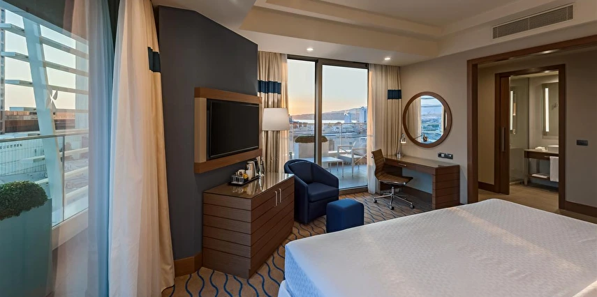 İzmir Fuarı ile aynı bölgede bulunan Four Points by Sheraton Izmir Forum Bornova AVM ve İzmir Limanı - Alsancak ile yakın mesafede misafirlere hizmet vermektedir