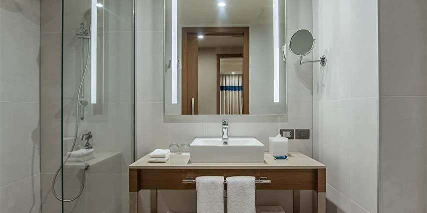 Daha Fazla GösterMisafirlerimizin konforu ve rahatı için 110 klimalı oda minibar ve LED televizyon bulunmaktadır. Odalarda özel mobilyalı balkon veya avlu bulunur. Odada ücretsiz kablosuz İnternet vardır. Özel banyo, duş kabini, saç kurutma makinesi ve terlik vardır.Spor salonu gibi dinlenme imkânlarından/kolaylıklarından yararlanın veya bahçe ile manzaranın tadını çıkartın. Bu otelde misafilere ücretsiz kablosuz İnternet ve lobide televizyon sunulmaktadır.