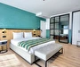 Her odada özel banyo, düz ekran TV ve minibar gibi rahatlıklar bulunurken, otelde 24 saat açık resepsiyon, oda servisi ve havalimanı transfer hizmeti de mevcuttur.