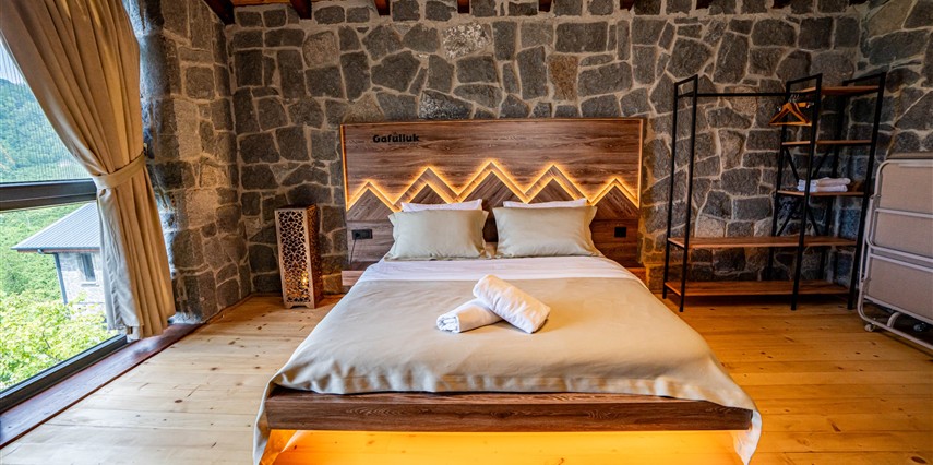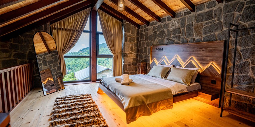 Tam donanımlı müstakil taş evlerimiz ve özel tasarım villalarımız, modern yaşamın tüm ihtiyaçlarını karşılayacak şekilde özenle tasarlanmıştır. Güne doğal ve yöresel lezzetlerle hazırlanan Karadeniz kahvaltımız ile başlayabilir, çevredeki yaylaları, doğal güzellikleri ve tarihi noktaları keşfe çıkabilirsiniz.