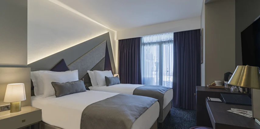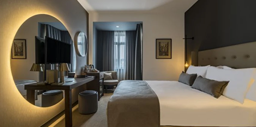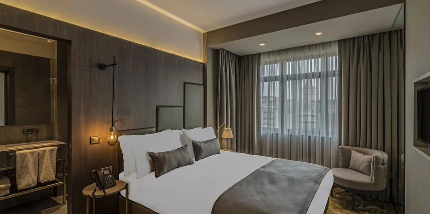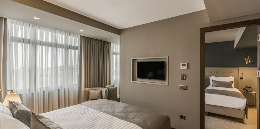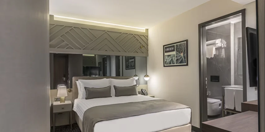 Daha Fazla GösterGalata Times Boutique Hotel, konforu zarafetle buluşturan şık ve modern odalarıyla misafirlerine keyifli bir konaklama deneyimi sunuyor. Özenle dekore edilmiş odalarda; düz ekran HD TV, uydu yayını, konforlu yataklar, kablosuz internet erişimi, minibar ile kahve, çay ve su ikramı bulunuyor. Banyolar ise 24 saat sıcak su, buklet malzemeler, büyüteçli ayarlanabilir ayna ve saç kurutma makinesi ile donatılmış durumda.
