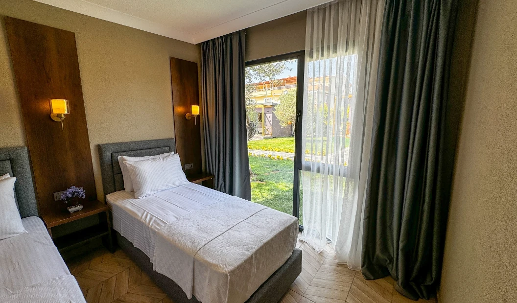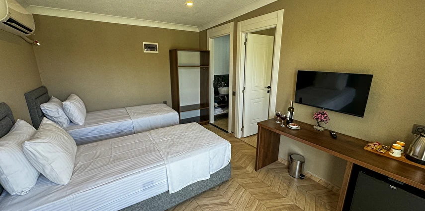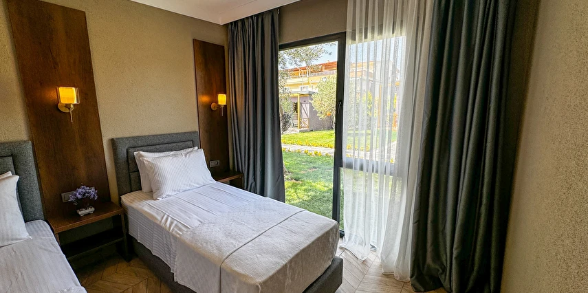 Odalarımızın tamamı günümüz konforunda dizayn edilmiş olup 26 Standart – 4 Aile (Ara Kapılı) Odası olmak üzere toplam 30 Oda dan oluşmaktadır.