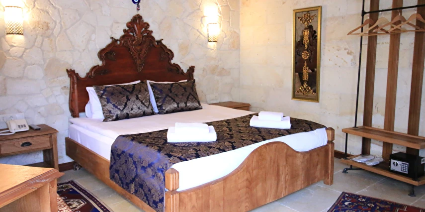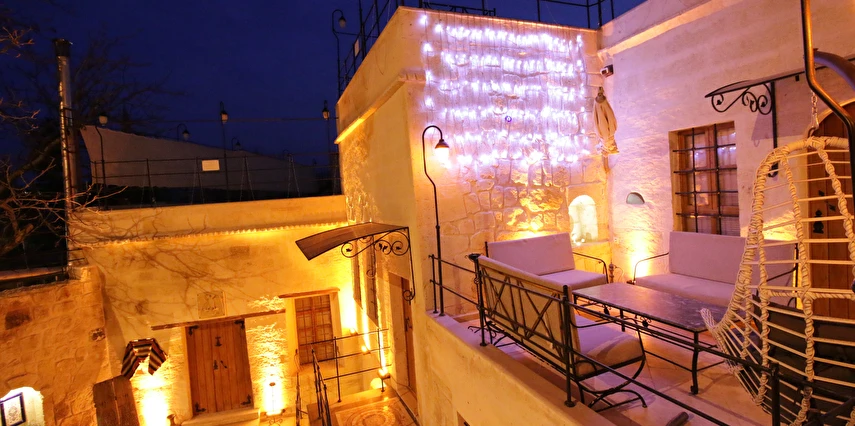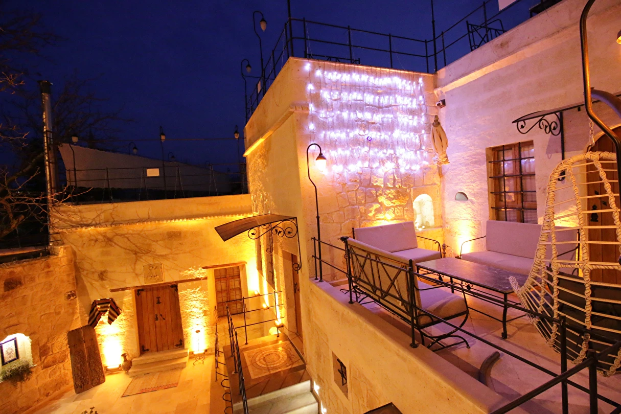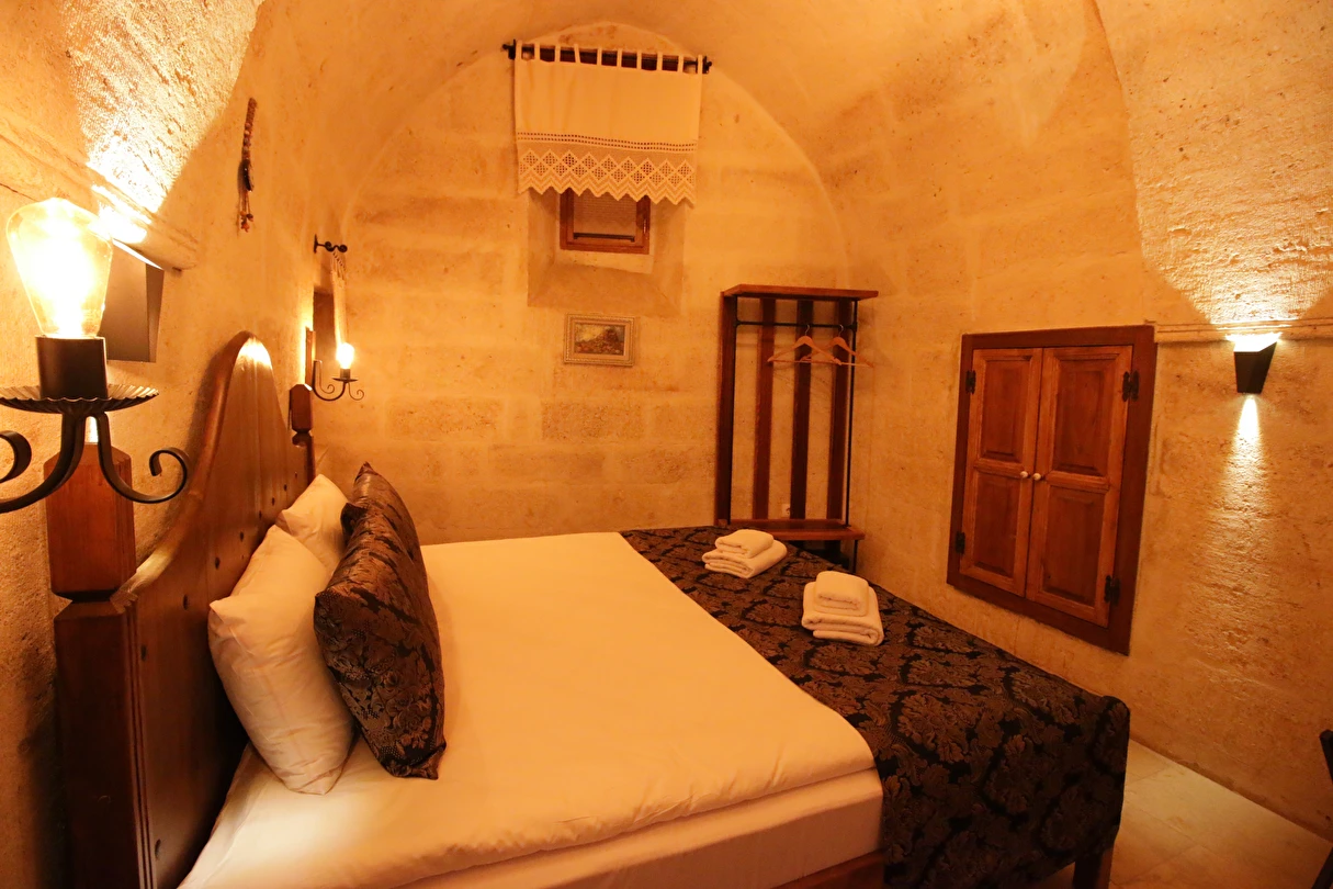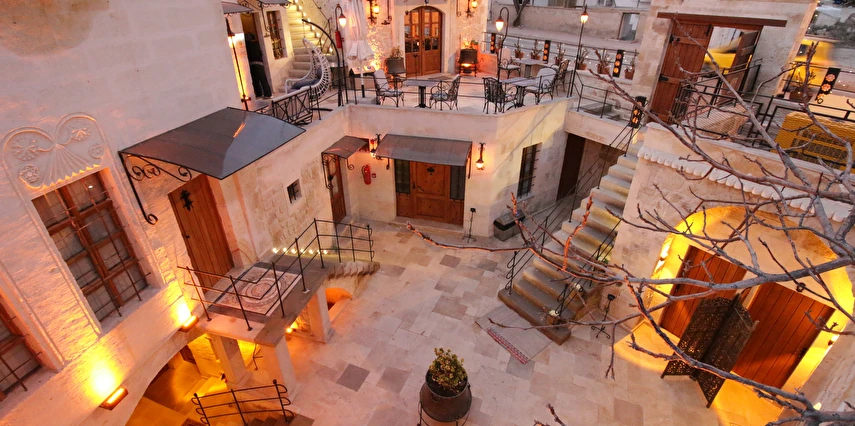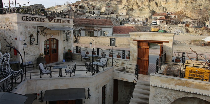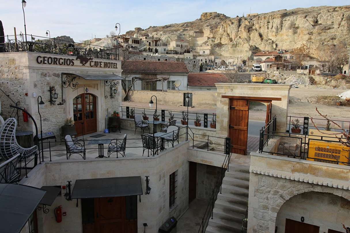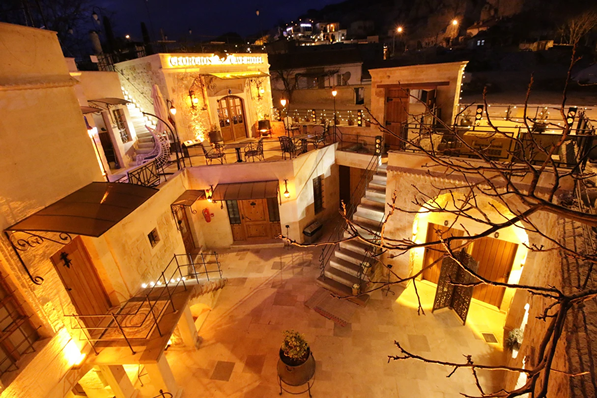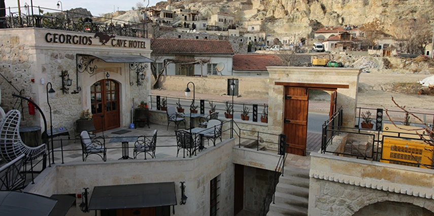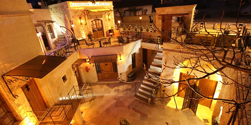 Adını Romalı bir asker olan Aziz Georgios'tan alan Georgios Cave Hotel, misafirlerimize Ürgüp'ün tarihi ve kültürel zenginlikleriyle iç içe bir konaklama deneyimi sunuyor. Kapadokya'nın benzersiz kaya oyma yapılarıyla çevrili olan otelimiz, Aziz Georgios Kilisesi'ne yakın konumu ve mistik atmosferiyle hizmetinizde. Geleneksel taş yapılar ve modern olanakların mükemmel bir uyum içinde sunulduğu Georgios Cave Hotel, siz konuklarımıza tarihi bir dokuda lüks ve rahatlık sağlıyor. Hem şehri keşfetmek isteyen gezginler hem de huzur arayanlar için ideal bir seçenek olan otelimiz, unutulmaz bir tatil için Kapadokya'nın kalbinde mükemmel bir başlangıç noktasıdır.
