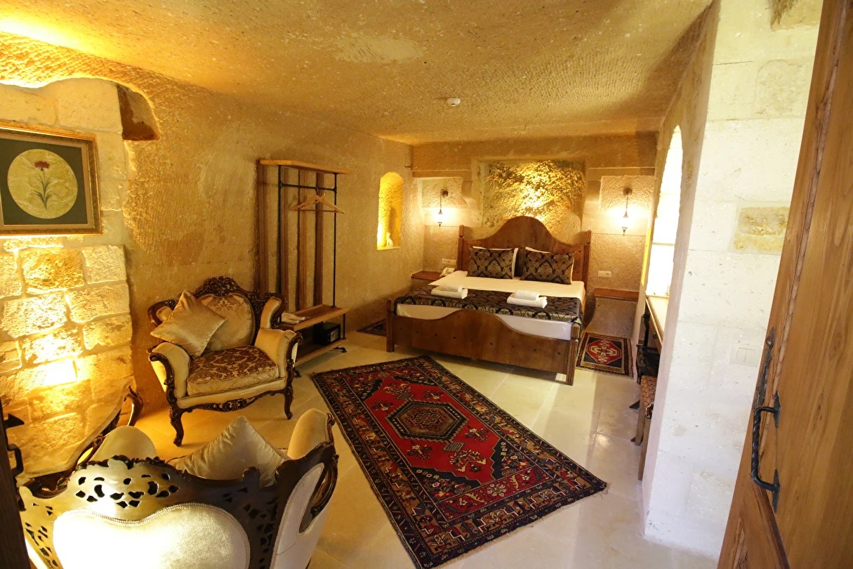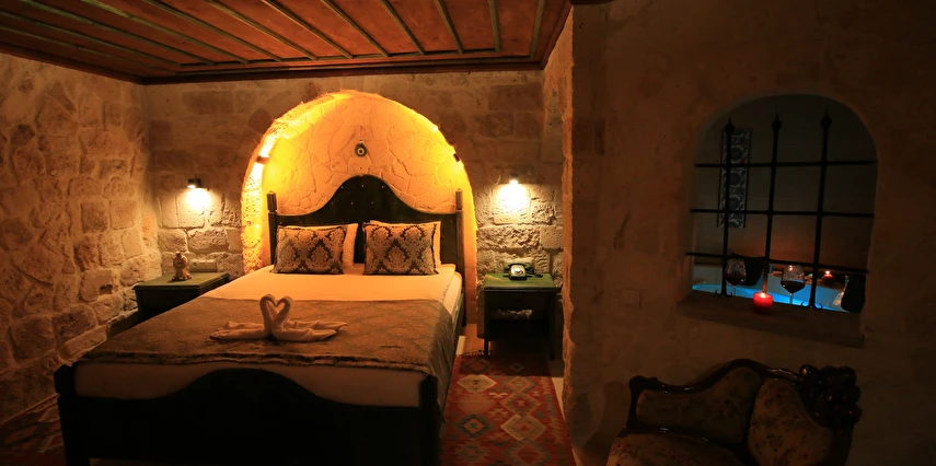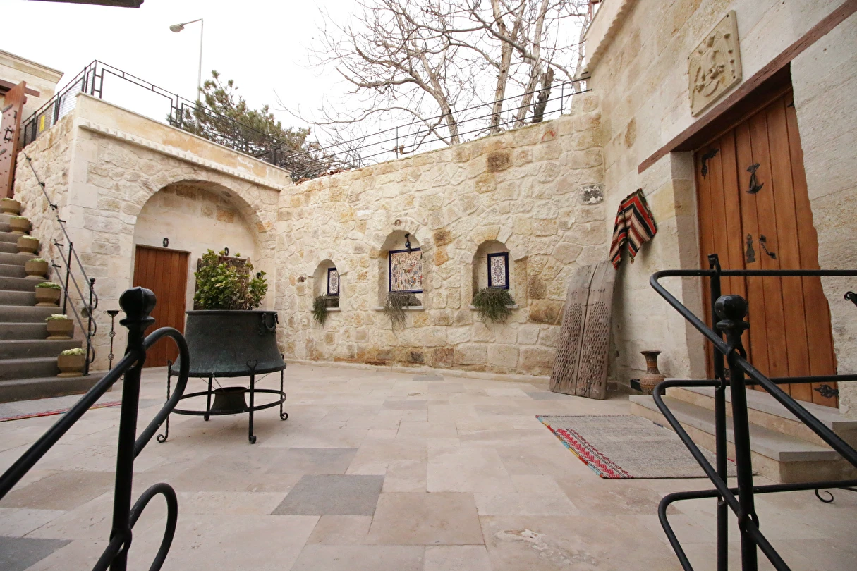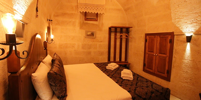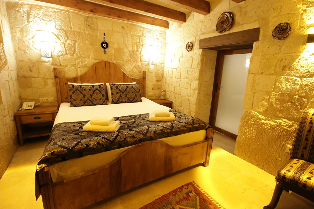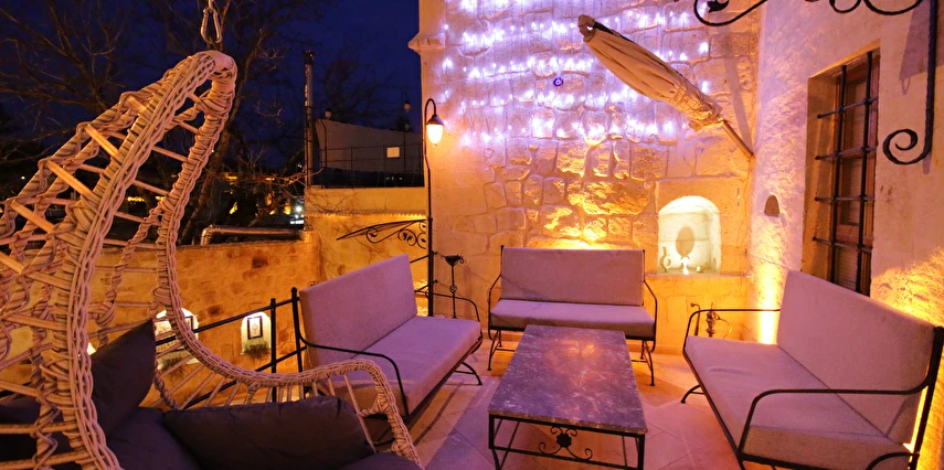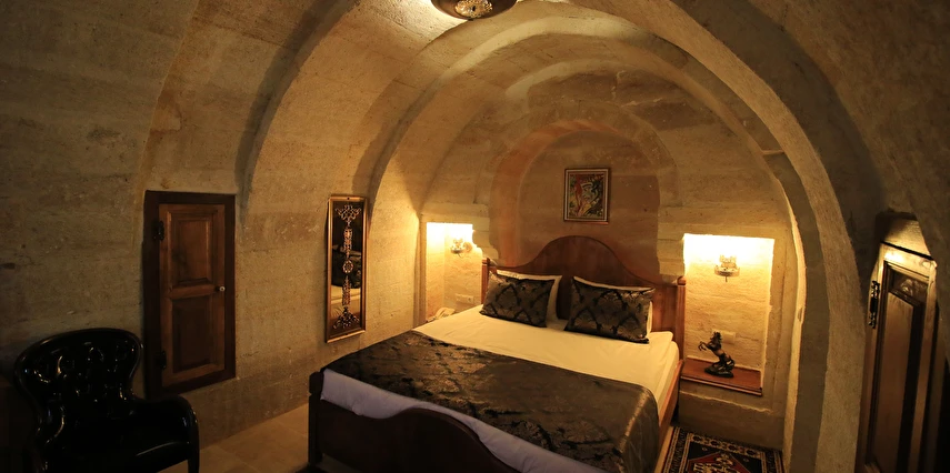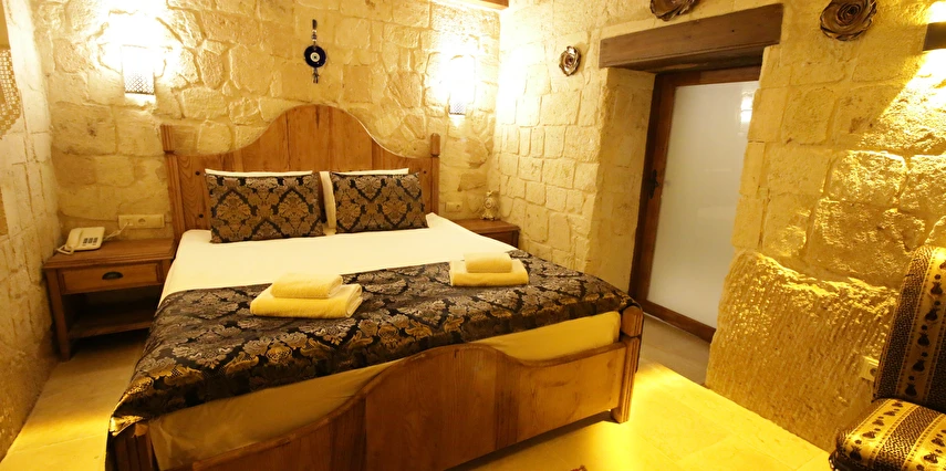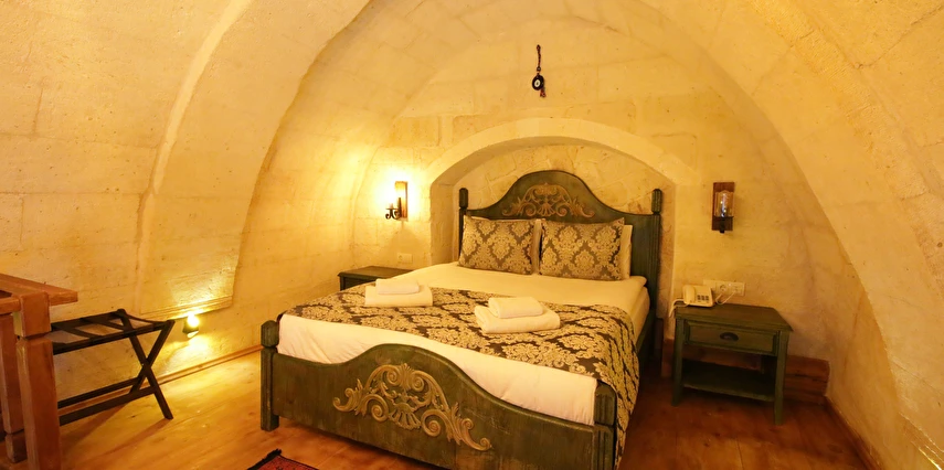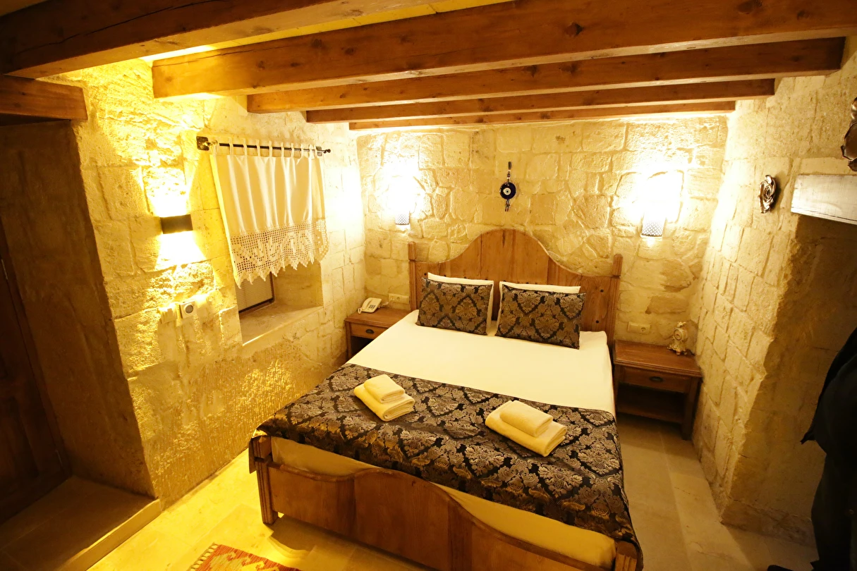 Adını Romalı bir asker olan Aziz Georgios'tan alan Georgios Cave Hotel, misafirlerimize Ürgüp'ün tarihi ve kültürel zenginlikleriyle iç içe bir konaklama deneyimi sunuyor. Kapadokya'nın benzersiz kaya oyma yapılarıyla çevrili olan otelimiz, Aziz Georgios Kilisesi'ne yakın konumu ve mistik atmosferiyle hizmetinizde. Geleneksel taş yapılar ve modern olanakların mükemmel bir uyum içinde sunulduğu Georgios Cave Hotel, siz konuklarımıza tarihi bir dokuda lüks ve rahatlık sağlıyor. Hem şehri keşfetmek isteyen gezginler hem de huzur arayanlar için ideal bir seçenek olan otelimiz, unutulmaz bir tatil için Kapadokya'nın kalbinde mükemmel bir başlangıç noktasıdır.