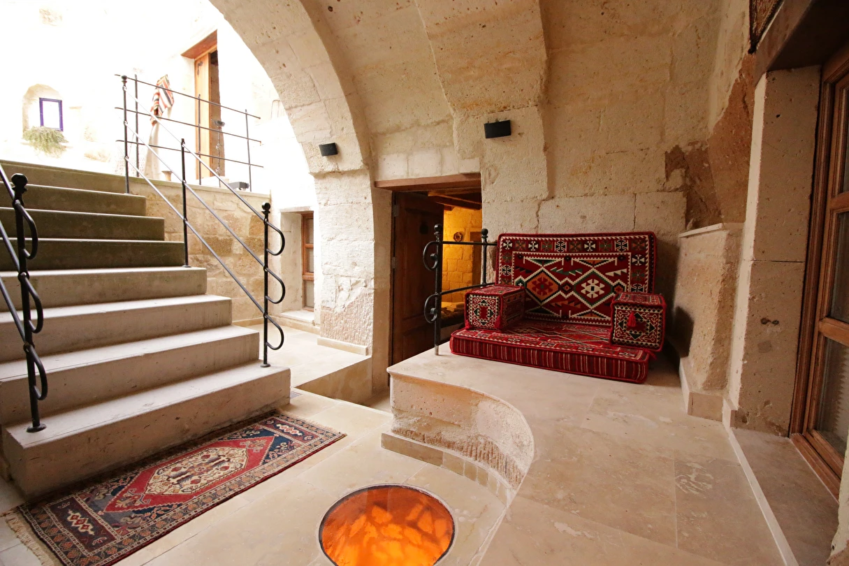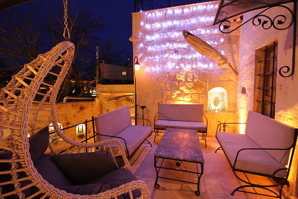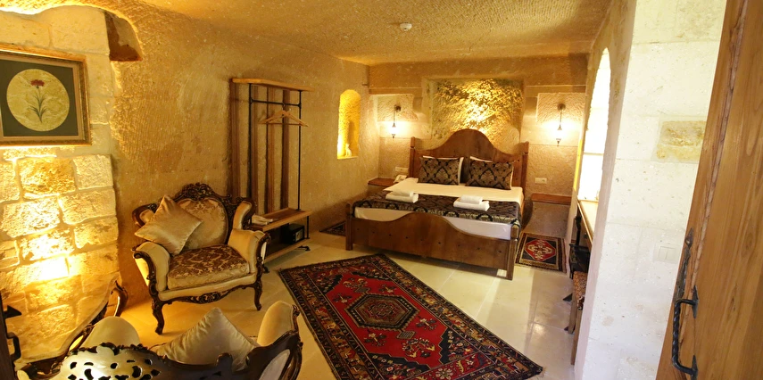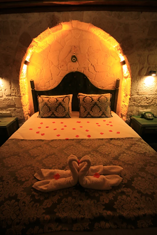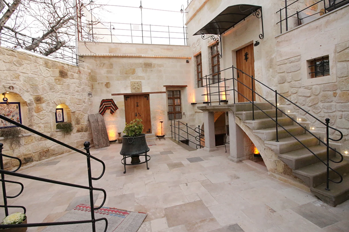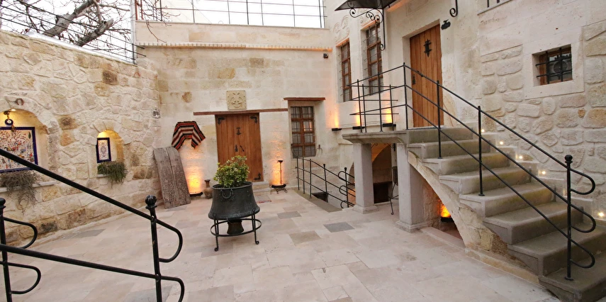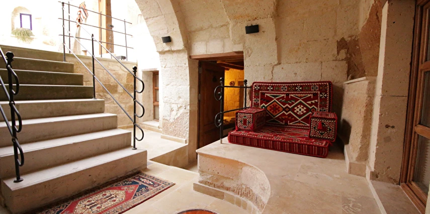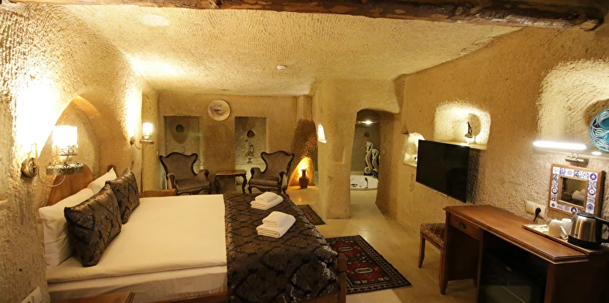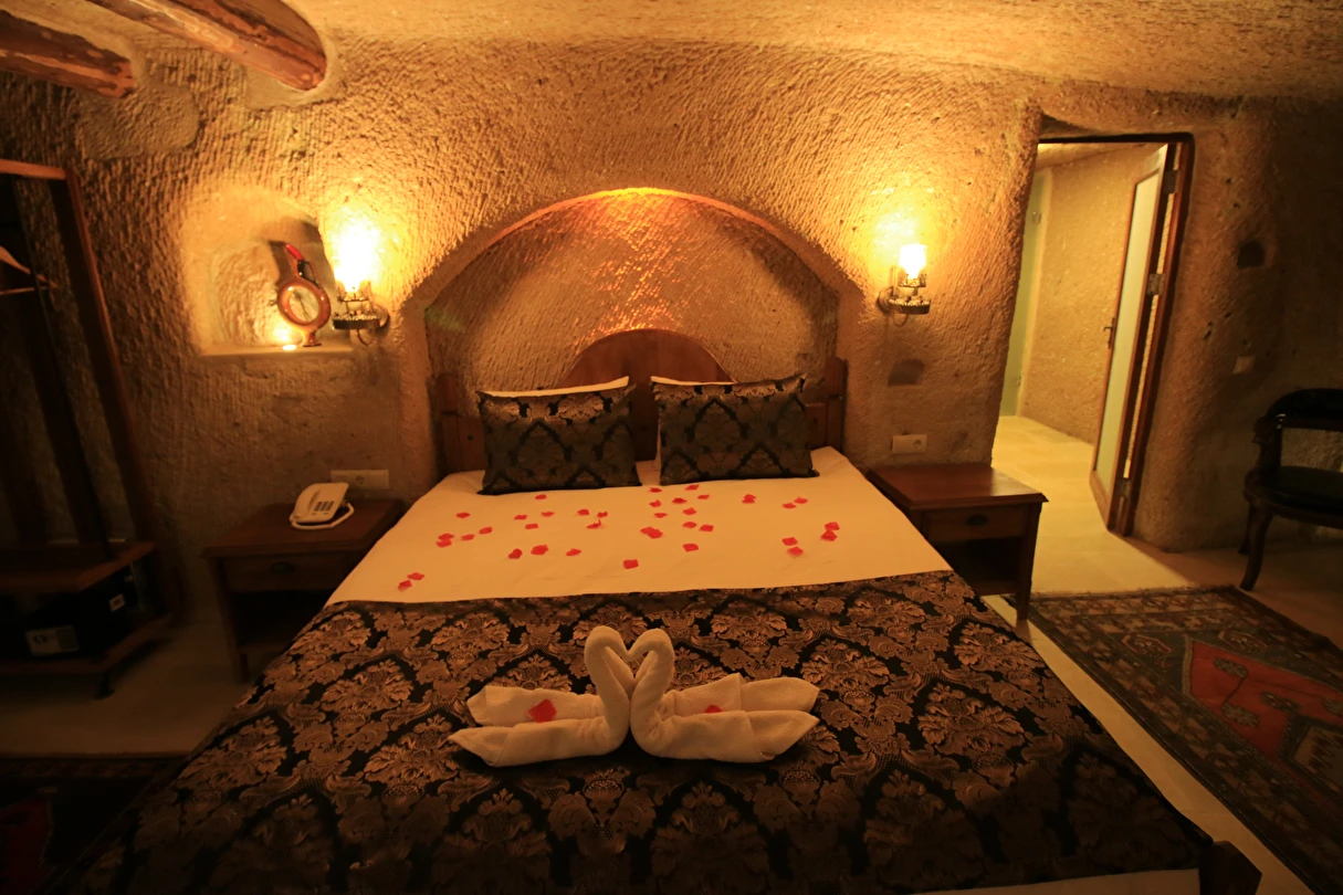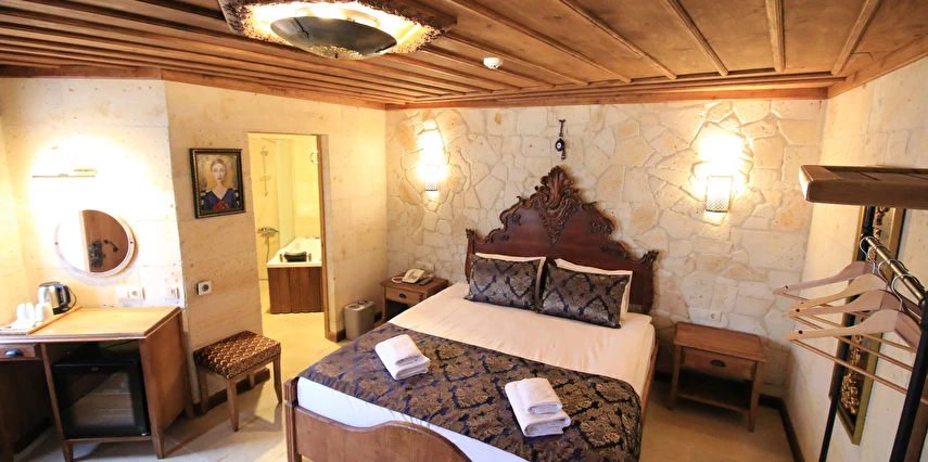 Adını Romalı bir asker olan Aziz Georgios'tan alan Georgios Cave Hotel, misafirlerimize Ürgüp'ün tarihi ve kültürel zenginlikleriyle iç içe bir konaklama deneyimi sunuyor. Kapadokya'nın benzersiz kaya oyma yapılarıyla çevrili olan otelimiz, Aziz Georgios Kilisesi'ne yakın konumu ve mistik atmosferiyle hizmetinizde. Geleneksel taş yapılar ve modern olanakların mükemmel bir uyum içinde sunulduğu Georgios Cave Hotel, siz konuklarımıza tarihi bir dokuda lüks ve rahatlık sağlıyor. Hem şehri keşfetmek isteyen gezginler hem de huzur arayanlar için ideal bir seçenek olan otelimiz, unutulmaz bir tatil için Kapadokya'nın kalbinde mükemmel bir başlangıç noktasıdır.