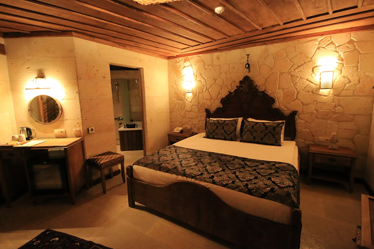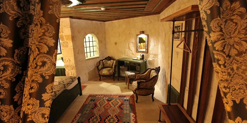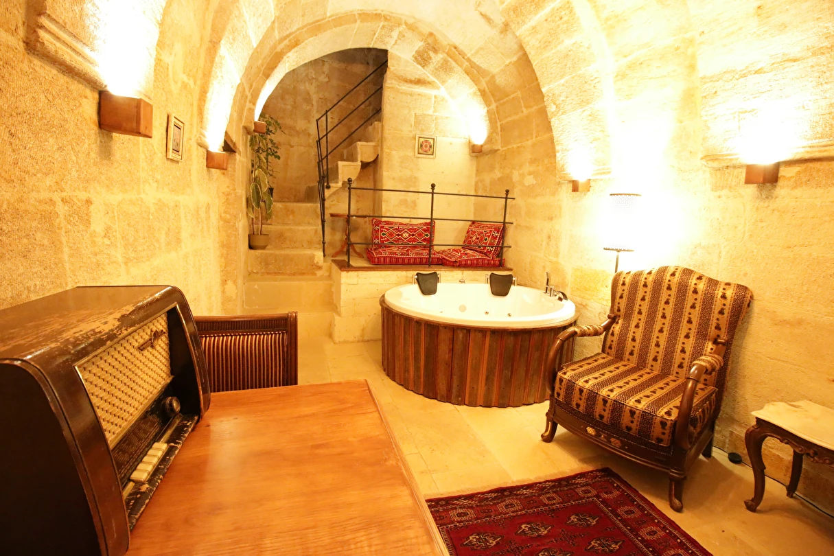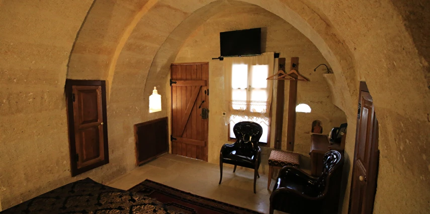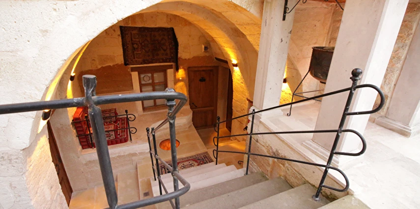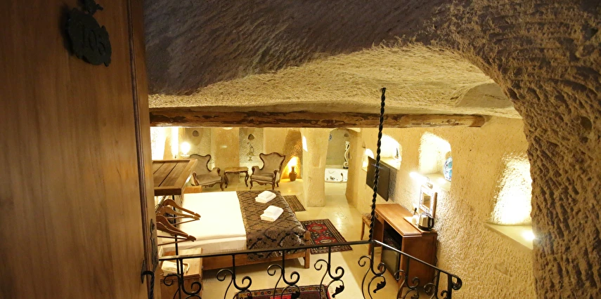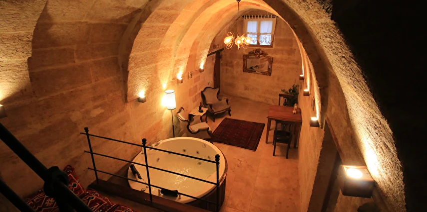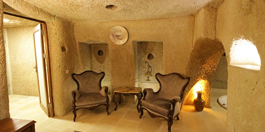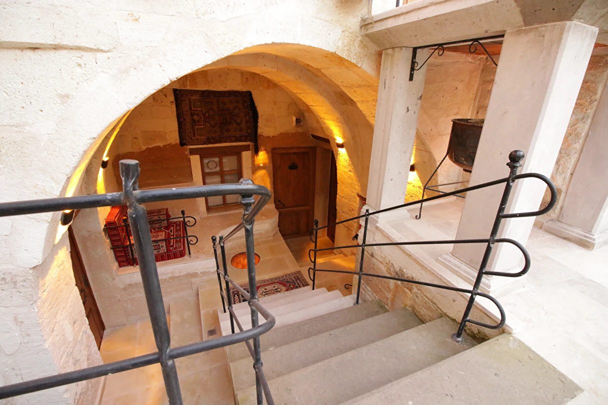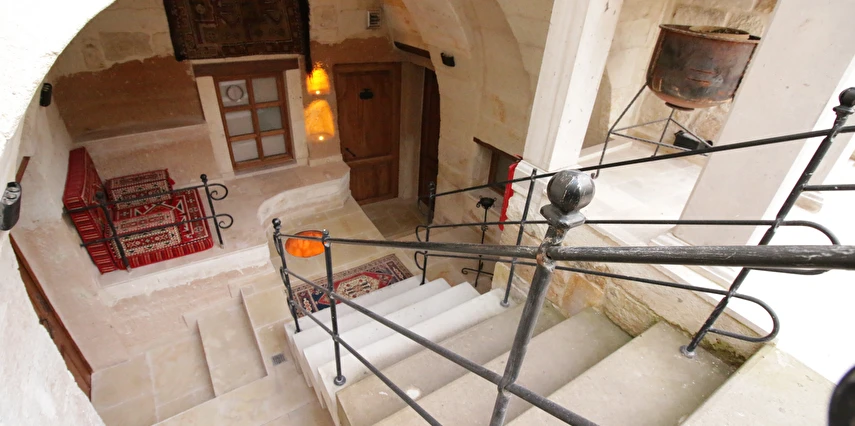 Adını Romalı bir asker olan Aziz Georgios'tan alan Georgios Cave Hotel, misafirlerimize Ürgüp'ün tarihi ve kültürel zenginlikleriyle iç içe bir konaklama deneyimi sunuyor. Kapadokya'nın benzersiz kaya oyma yapılarıyla çevrili olan otelimiz, Aziz Georgios Kilisesi'ne yakın konumu ve mistik atmosferiyle hizmetinizde. Geleneksel taş yapılar ve modern olanakların mükemmel bir uyum içinde sunulduğu Georgios Cave Hotel, siz konuklarımıza tarihi bir dokuda lüks ve rahatlık sağlıyor. Hem şehri keşfetmek isteyen gezginler hem de huzur arayanlar için ideal bir seçenek olan otelimiz, unutulmaz bir tatil için Kapadokya'nın kalbinde mükemmel bir başlangıç noktasıdır.