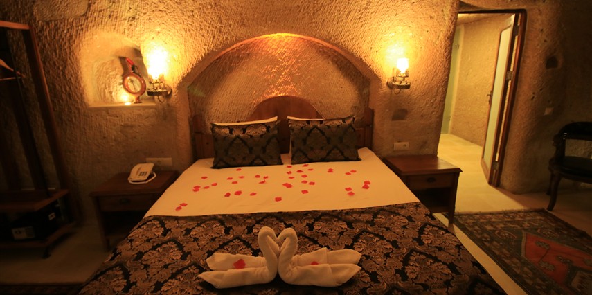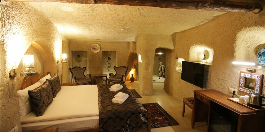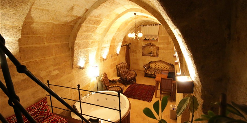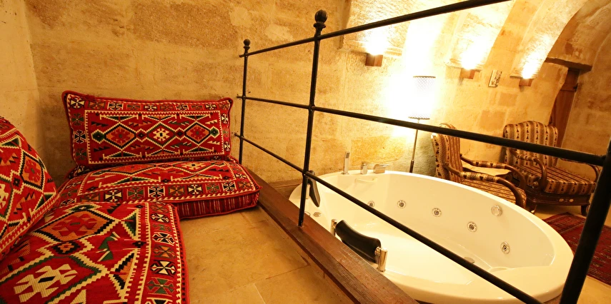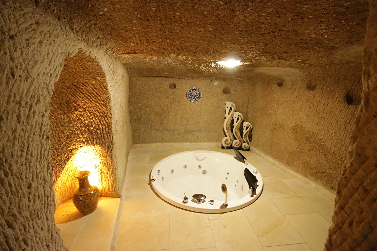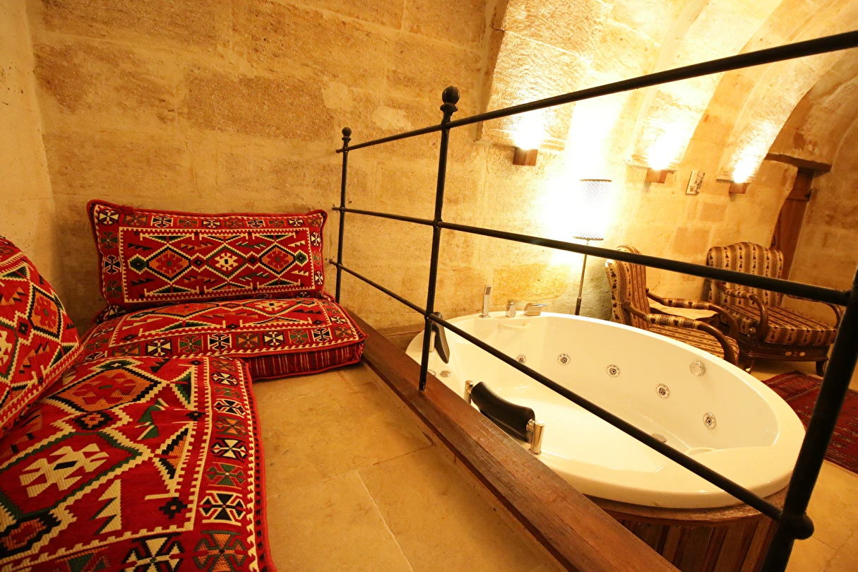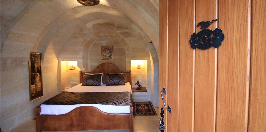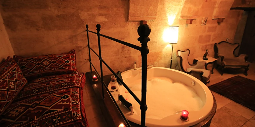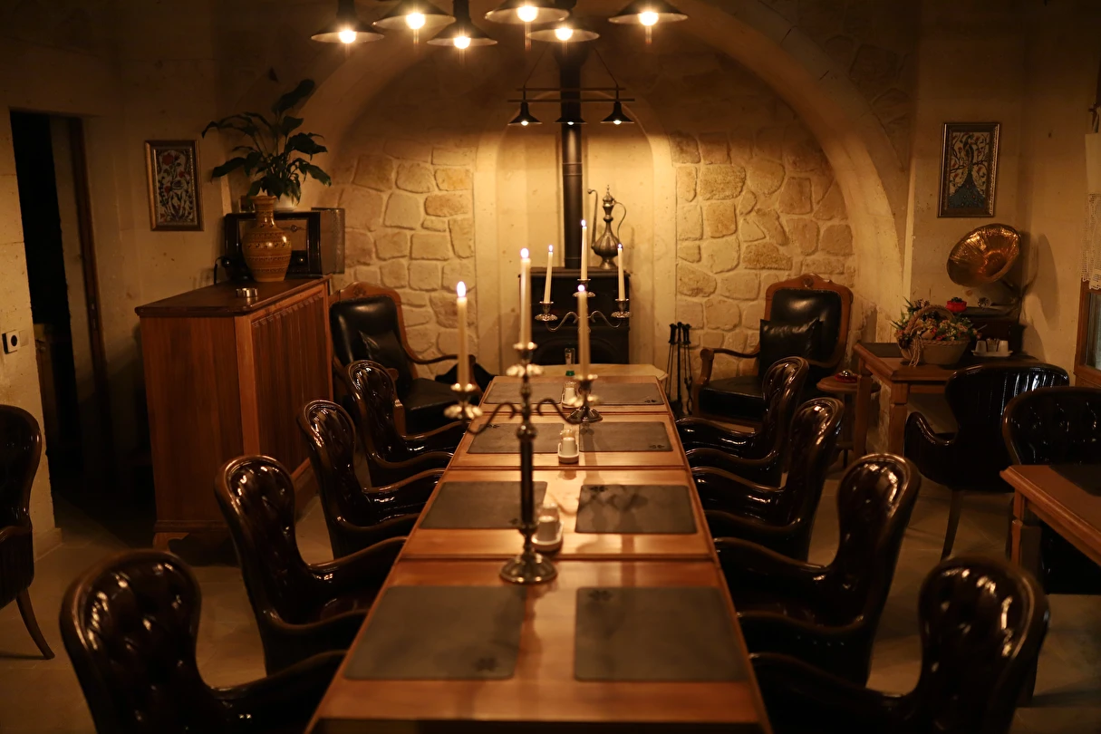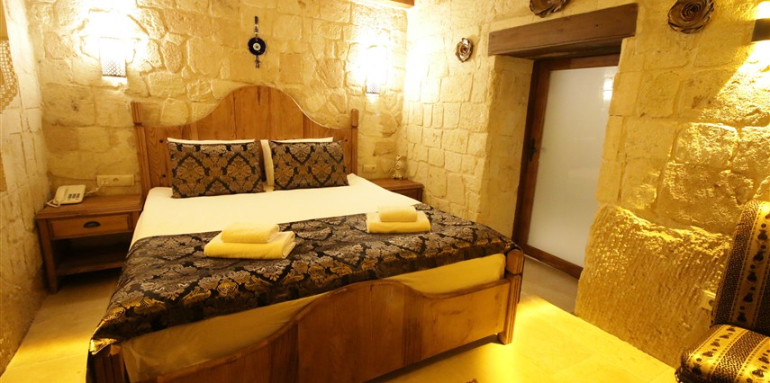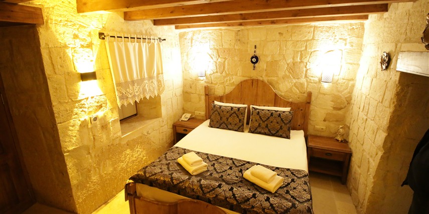Adını Romalı bir asker olan Aziz Georgios'tan alan Georgios Cave Hotel, misafirlerimize Ürgüp'ün tarihi ve kültürel zenginlikleriyle iç içe bir konaklama deneyimi sunuyor. Kapadokya'nın benzersiz kaya oyma yapılarıyla çevrili olan otelimiz, Aziz Georgios Kilisesi'ne yakın konumu ve mistik atmosferiyle hizmetinizde. Geleneksel taş yapılar ve modern olanakların mükemmel bir uyum içinde sunulduğu Georgios Cave Hotel, siz konuklarımıza tarihi bir dokuda lüks ve rahatlık sağlıyor. Hem şehri keşfetmek isteyen gezginler hem de huzur arayanlar için ideal bir seçenek olan otelimiz, unutulmaz bir tatil için Kapadokya'nın kalbinde mükemmel bir başlangıç noktasıdır.
