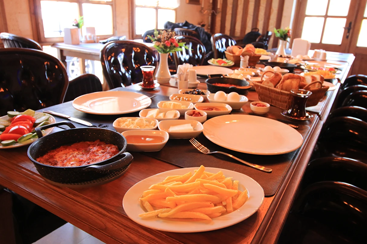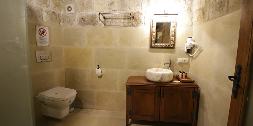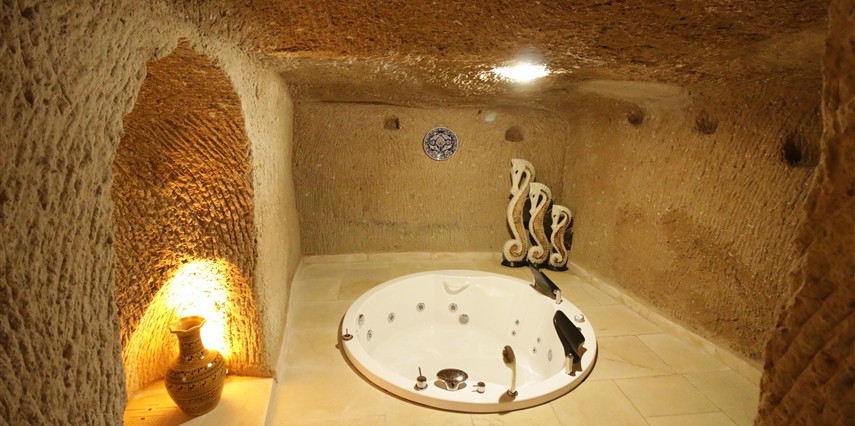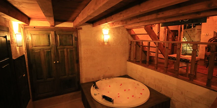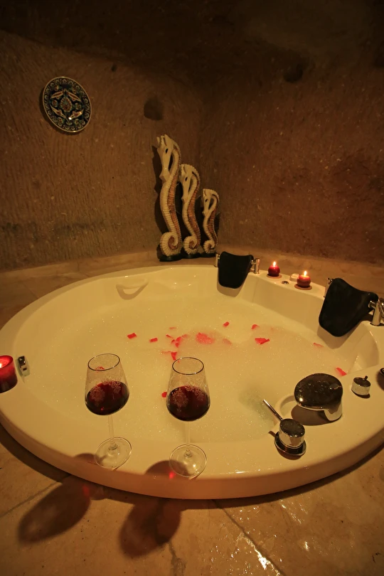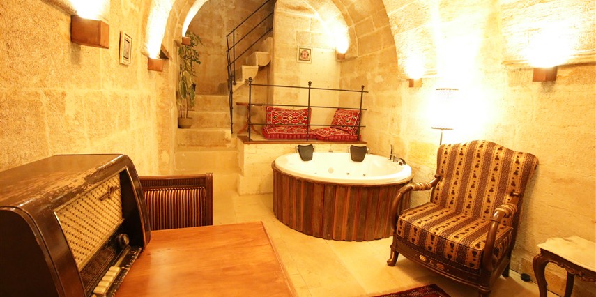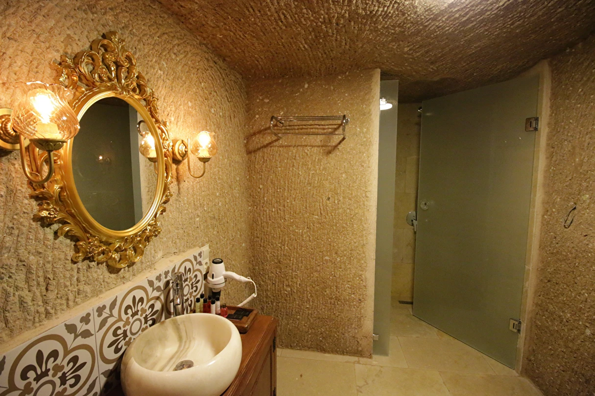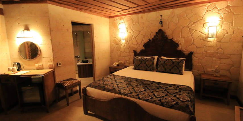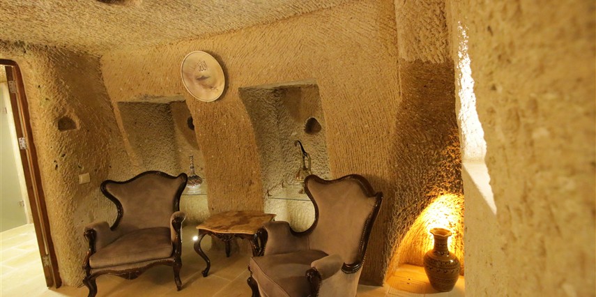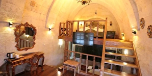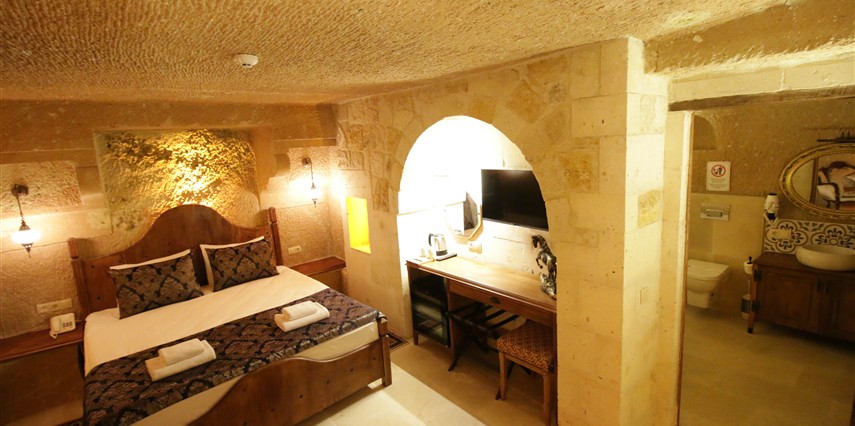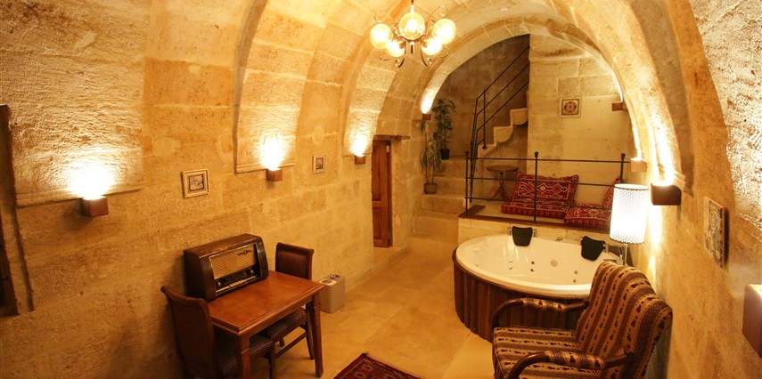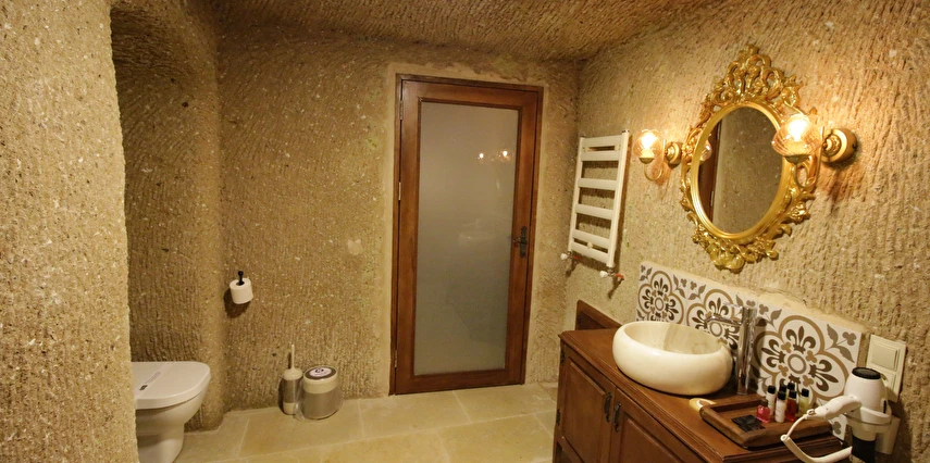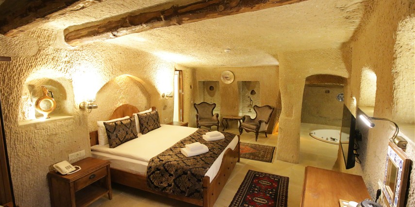 Adını Romalı bir asker olan Aziz Georgios'tan alan Georgios Cave Hotel, misafirlerimize Ürgüp'ün tarihi ve kültürel zenginlikleriyle iç içe bir konaklama deneyimi sunuyor. Kapadokya'nın benzersiz kaya oyma yapılarıyla çevrili olan otelimiz, Aziz Georgios Kilisesi'ne yakın konumu ve mistik atmosferiyle hizmetinizde. Geleneksel taş yapılar ve modern olanakların mükemmel bir uyum içinde sunulduğu Georgios Cave Hotel, siz konuklarımıza tarihi bir dokuda lüks ve rahatlık sağlıyor. Hem şehri keşfetmek isteyen gezginler hem de huzur arayanlar için ideal bir seçenek olan otelimiz, unutulmaz bir tatil için Kapadokya'nın kalbinde mükemmel bir başlangıç noktasıdır.