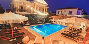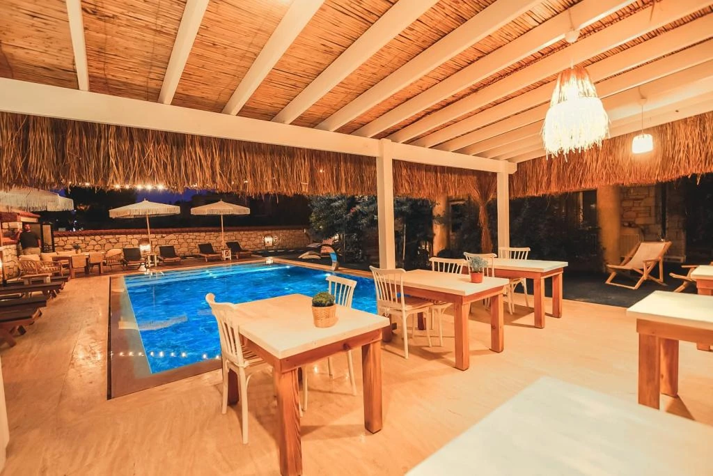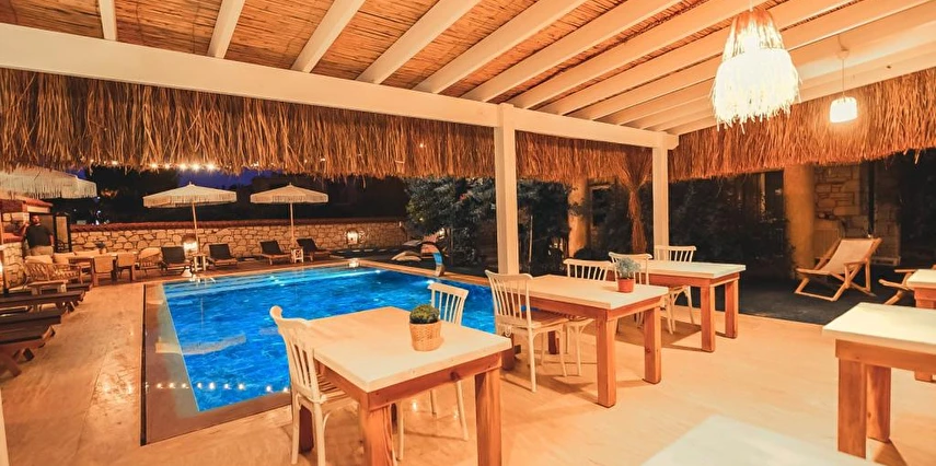 Taş ev mimarisine sahip tesiste, kahvaltı ve açık yüzme havuzu gibi olanaklar yer alıyor.