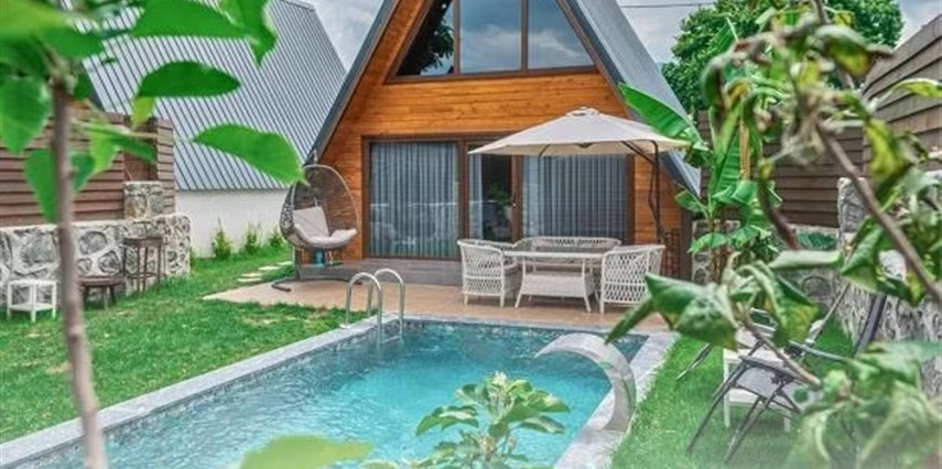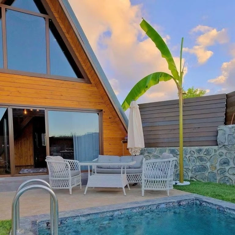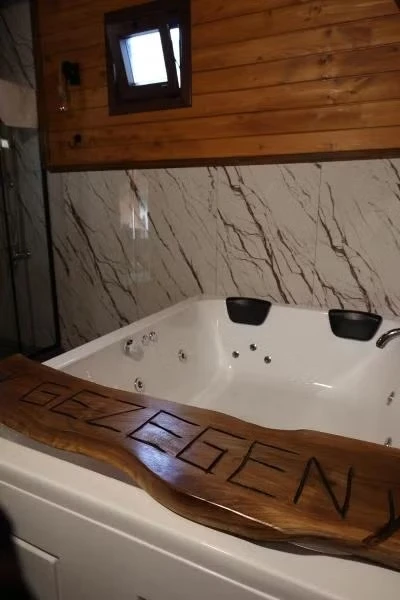 Daha Fazla GösterDoğanın Kucağında Huzur Dolu Bir Kaçış: Gezegen Bungalowları İstanbul'a sadece 1,5 saat mesafede, Sapanca Gölü'nün hemen yakınında bulunan Gezegen bungalow'umuz, doğa ile iç içe bir tatil deneyimi sunuyor. İdeal konumuyla şehrin karmaşasından uzaklaşıp huzur dolu bir mola geçirmek isteyen çiftler ve aileler için mükemmel bir seçenektir. Özellikler: • 2+1 Yatak Odalı: Modern tasarımlı bungalow'umuzda iki yatak odası ve geniş bir oturma alanı bulunmaktadır. Rahatınız için özenle düzenlenmiş odalarımızda unutulmaz bir konaklama geçireceksiniz. • Klimalı ve Yerden Isıtmalı: Her mevsimde konforunuzu düşünerek klima ve yerden ısıtma sistemi mevcuttur, böylece sıcak yaz günlerinde serinleyebilir, soğuk kış günlerinde ise içiniz rahat bir şekilde ısınabilirsiniz. • Jakuzi ve Sıcak Havuz: Özel jakuzi keyfiyle rahatlayabilir, aynı zamanda bungalow'umuzun sıcak havuzunda doğanın keyfini çıkarabilirsiniz. • Mutfak ve Barbekü Alanı: Kendi yemeklerinizi hazırlayabileceğiniz modern mutfak ve dış mekanda keyifli barbekü yapabileceğiniz alan mevcuttur. • Korunaklı Bahçe: Özel bahçemiz, sizin için korunaklı bir alan sunar. Burada doğayla baş başa dinlenebilir, çocuklarınız güvenle oynayabilir. • Doğa ile İç İçe: Bungalow'umuz, muhteşem doğa manzaralarıyla çevrilidir. Kuş cıvıltıları eşliğinde, şehrin gürültüsünden uzak bir tatil geçireceksiniz. • Lokasyon: Sapanca Gölü'ne sadece 5 dakika uzaklıkta bulunan bungalow'umuz, aynı zamanda kafeler, alışveriş merkezleri ve sosyal tesislere de ulaşımı kolaylaştırır. Bungalow'umuz, size unutulmaz bir tatil deneyimi sunmak için hazır! İhtiyacınız olan tüm konfor ve rahatlıkla donatılmış Gezegen Bungalow'umuzda, sevdiklerinizle keyif dolu anlar yaşamak için bizi ziyaret etmeye davetlisiniz. Detaylı bilgi ve rezervasyon için bize ulaşmayı unutmayın!