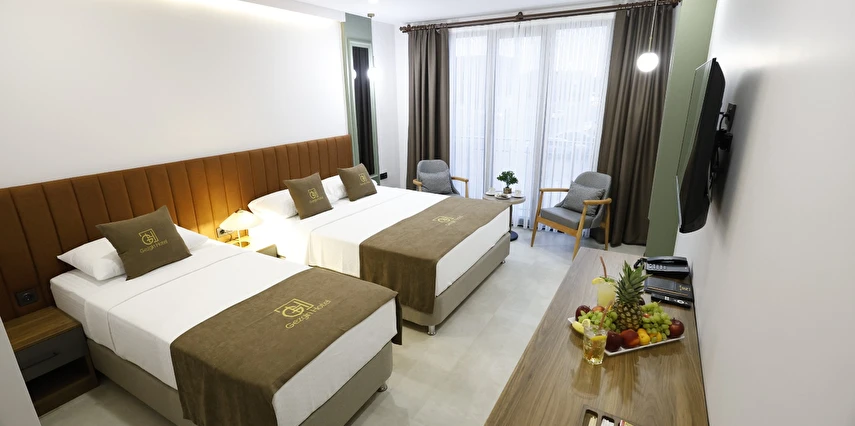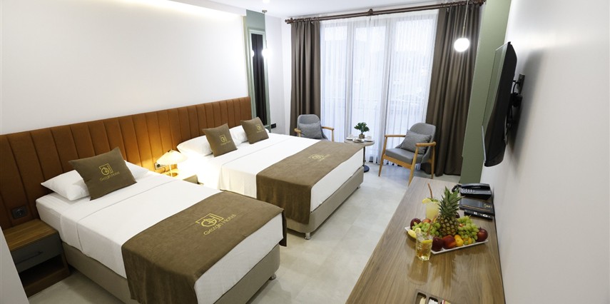 Daha Fazla GösterGezgin Hotel Edirne, Osmanlı’ya uzun yıllar başkentlik yapmış Edirne’nin tarihi ve canlı şehir dokusu içinde, merkezi konum avantajı sunan konforlu bir şehir otelidir. Selimiye Camii, Eski Cami ve Üç Şerefeli Cami gibi kentin simge yapıları otele kısa mesafede yer alırken, tarihi çarşılar ve şehir merkezi birkaç dakikalık sürüşle ulaşılabilecek konumdadır.