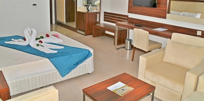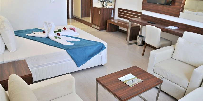 Tesis, yarım pansiyon konseptinde hizmet verir; konuklara her sabah açık büfe kahvaltı ve akşam yemekleri sunulur. Odalarda klima, ücretsiz Wi-Fi, TV, minibar ve kasa gibi çağdaş konfor özellikleri bulunmaktadır.