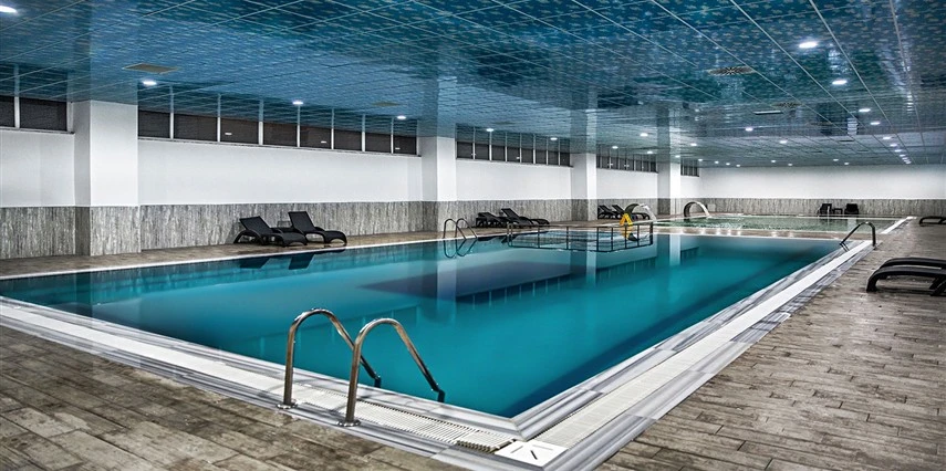 Otelin kapalı termal havuzları sayesinde yılın her döneminde şifalı sularla yüzme ve dinlenme fırsatı elde edebilirsiniz; çocuklar için ayrı havuz alanları da mevcuttur.