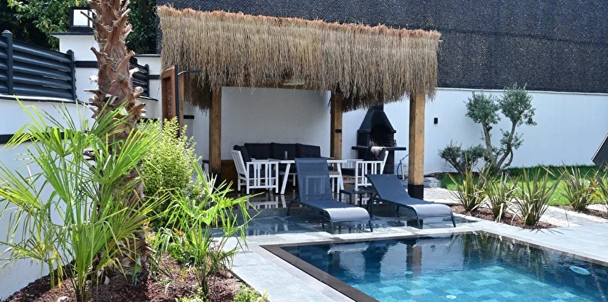 Her bir bungalovda özel havuz, ve doğa manzaralı genişbir bahçe bulunuyor. Yılın dört mevsimi keyifle konaklayabileceğiniz tesis, gündüzleri kuş cıvıltılarıyla, geceleri ise yıldızların ışıltısıyla tatilinizi unutulmaz kılıyor.