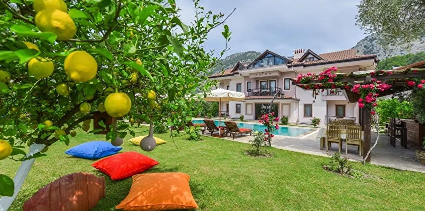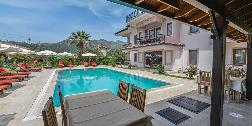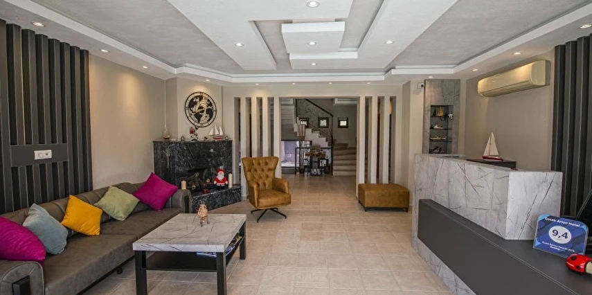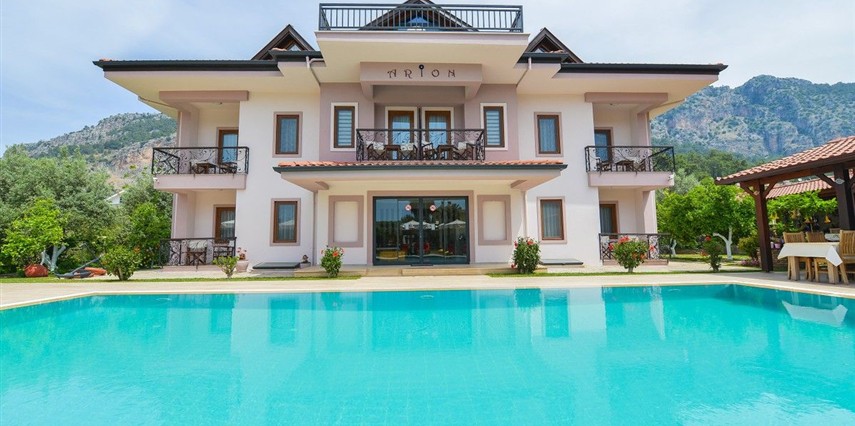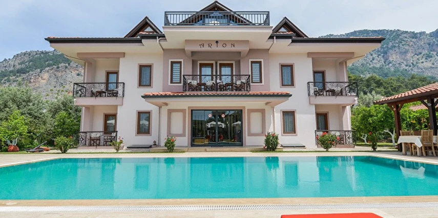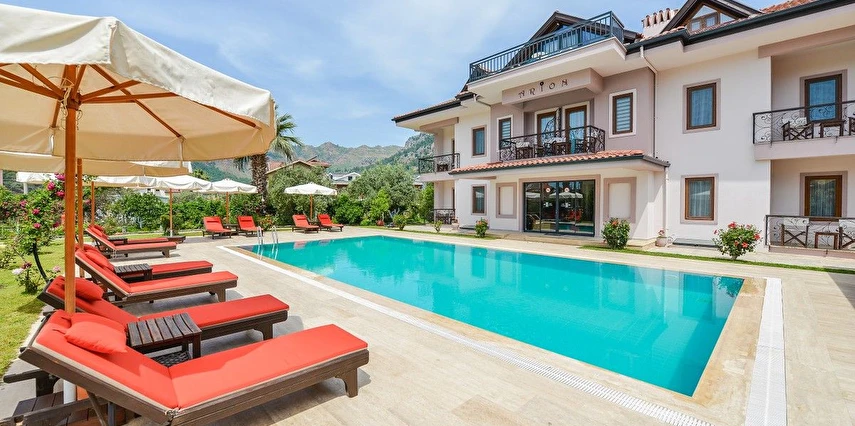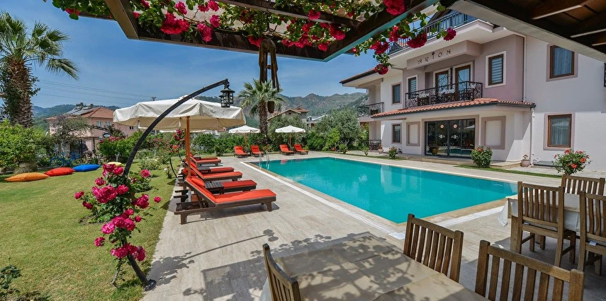 Daha Fazla GösterDünyanın en güzel koylarına ve adalarına sahip olan Göcek, hem deniziyle hem de doğal güzellikleriyle, siz tatilcilere, unutulmaz bir tatil yaşama fırsatı sunuyor. Dünyaca ünlü kimselerin uğrak yeri olan Göcek, dünyada sayısı oldulça az olan bir marinaya sahiptir. Göcek'i Göcek yapan tertemiz koyları, doğal güzellikleri ve sakinliğidir. Göcek yat turları, özel tekneler için her zaman dinlenme yeri olmuştur. Ayrıca yakın çevredeki tarihi ve doğal güzelliklere yakın olması Göcek için ayrı bir avantaj sağlamaktadır. Göcek’te konaklama hizmeti veren Göcek Arion Hotel , seçkin ve nezih ortamıyla siz değerli konuklara hizmet vermektedir. Portakal ve limon ağaçlarıyla kaplı geniş bir bahçe, olabildiğince güzel yüzme havuzu ve havuz-barıyla konuklarına hizmet veren otelimiz butik otel tarzında çalışmaktadır. Hotelimiz, sahipleri tarafından işletilen, yemesi, içmesi, kalması, sohbeti, ev havasından farkı olmayan, kendine has bir tasarımı ve tarzı olan hotelimiz, evinizde tatil keyfini sizlere sunuyor.