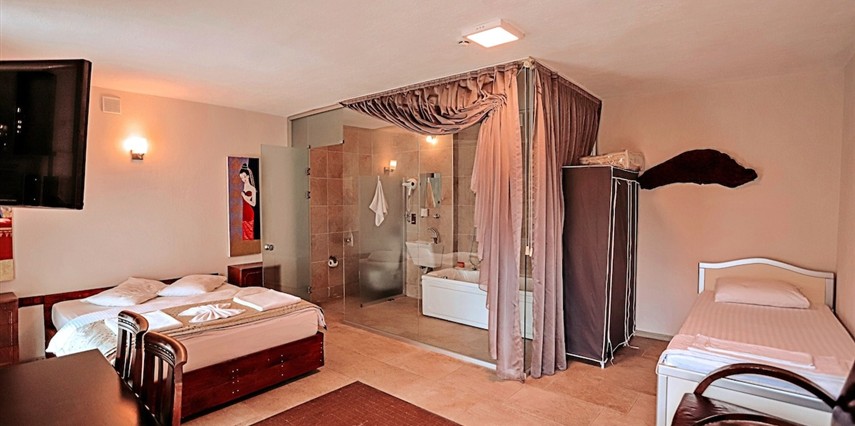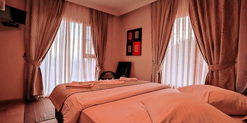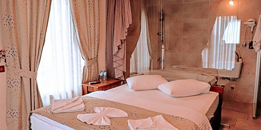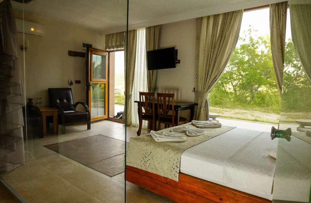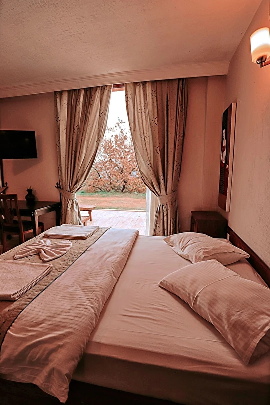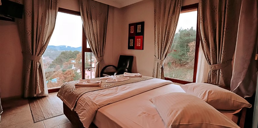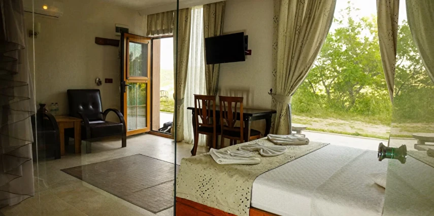 Otelimizde 8 adet otel odası ve 7 adet bungalov bulunmaktadır. 27 dönümlük bir arazide kurulu olan otelimize ait tüm binalar aynı arsa üzerinde birbirlerinden etkilenmeyecek şekilde konumlandırılmıştır. Tüm misafirlerimizin yararlanabildiği açık bir yüzme havuzu ve içkili bir restoranımız bulunmaktadır. Misafirlerimizin yemek yapabileceği veya mangal yakabileceği bir alan bulunmamakta tüm yiyecek ve içecek ihtiyaçları restoranımızdan karşılanabilmektedir.