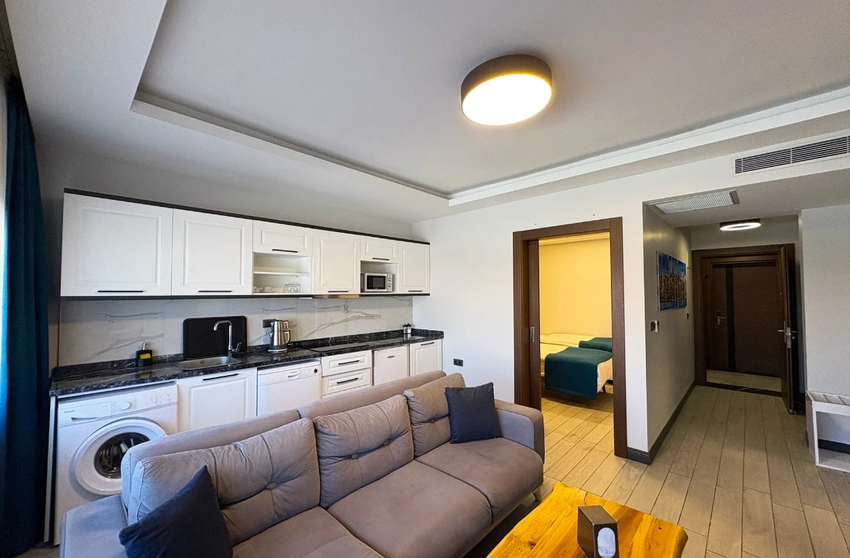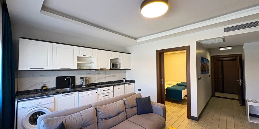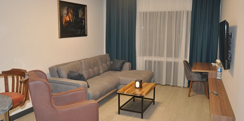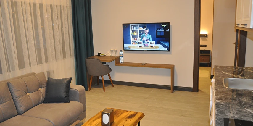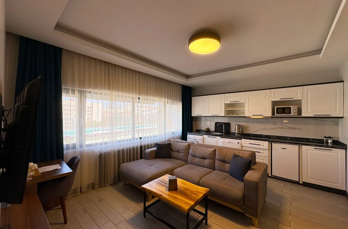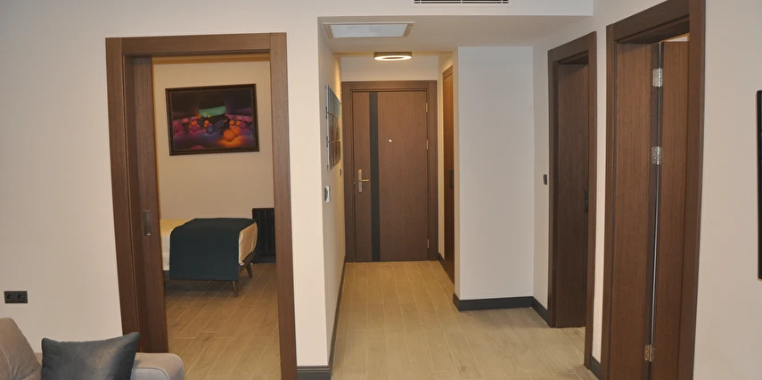Geniş ve ferah suit odalarda, konforlu ve uzun süreli konaklamalar için tüm detaylar düşünülmüştür.