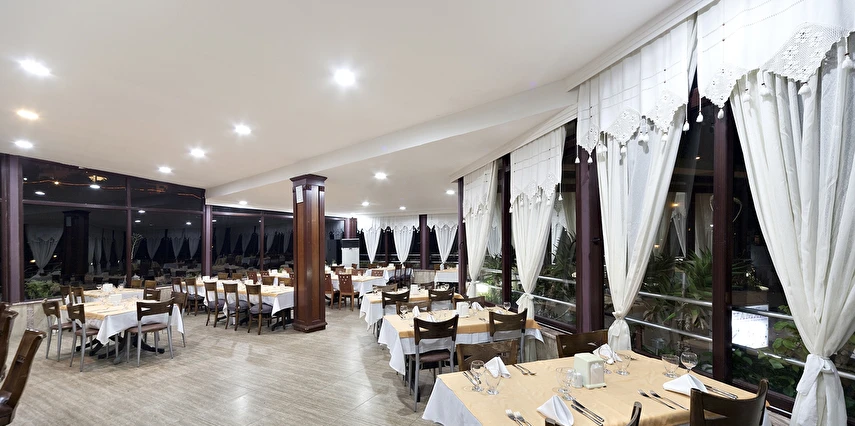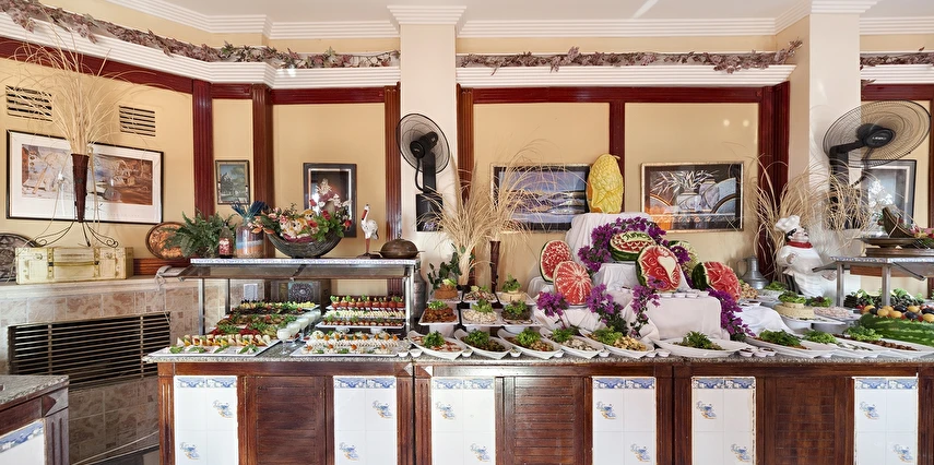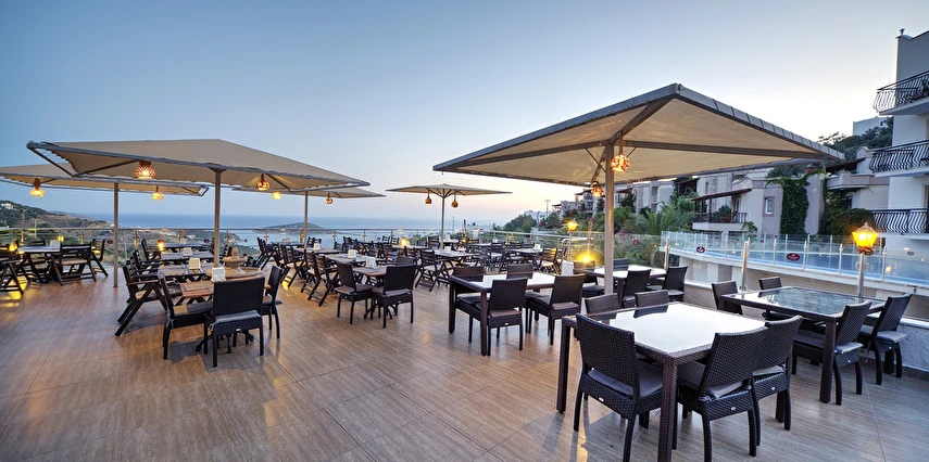 Sabah kahvaltısı, öğle ve akşam yemekleri açık büfe olup, tesisin belirlemiş olduğu markalar dahilinde yerli alkollü ve alkolsüz içecekler 10:00 ile 23:00 saatleri arasında ücretsizdir. Taze sıkılmış meyve suyu, ithal içkiler, ücretlidir. Türk Kahvesi ücretsizdir.
