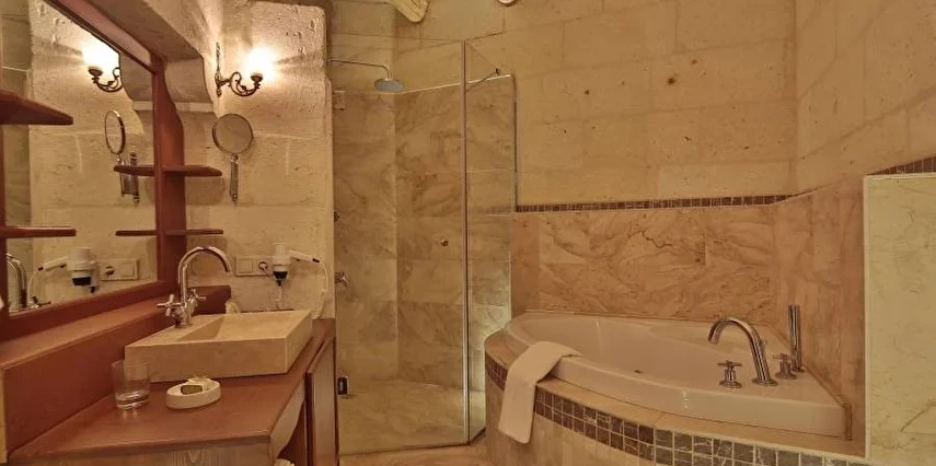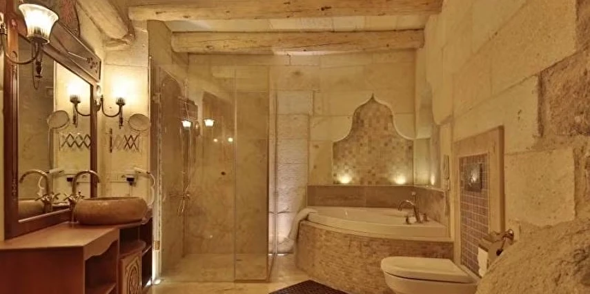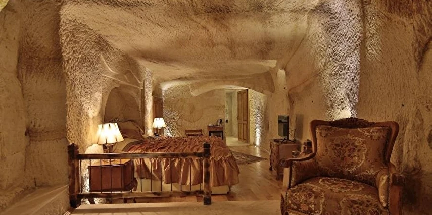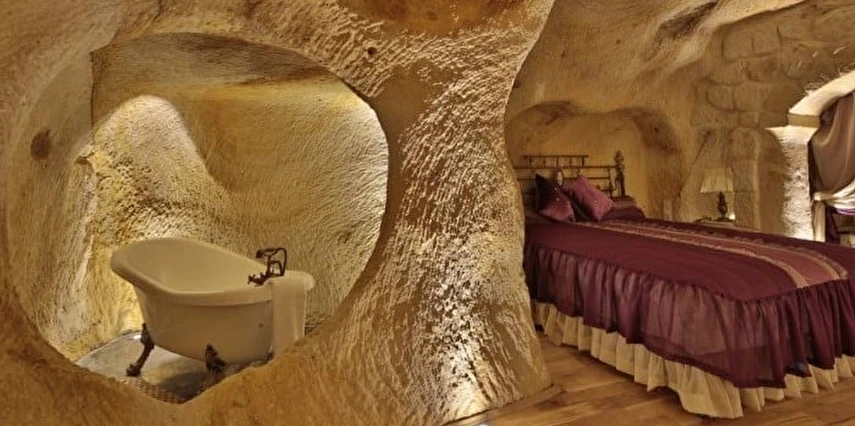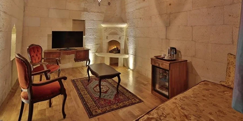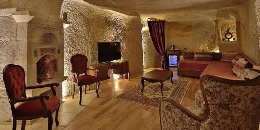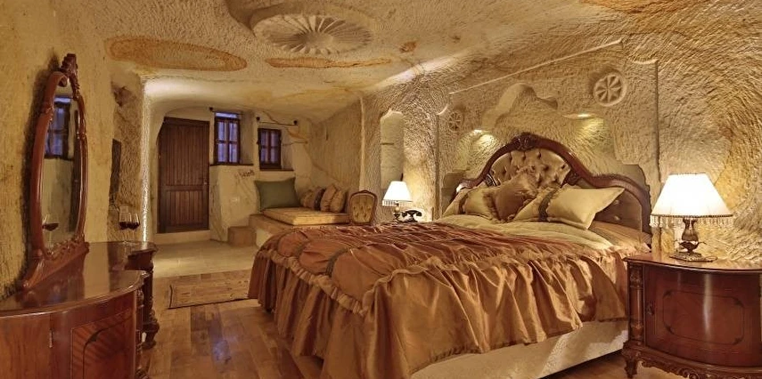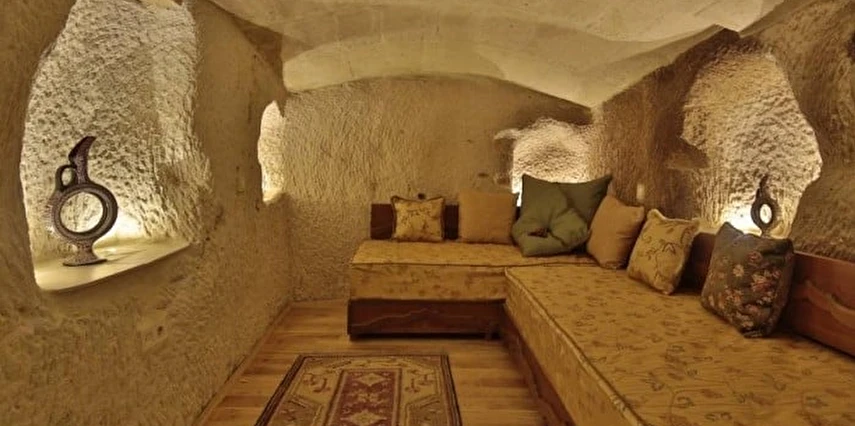 Otelimiz Ürgüp’e hakim Esbelli Mahallesinde konumlanmıştır. Tamamen kayadan el oyma veya taş odalarımız 40 ile 80 m2 arasında değişen genişliğe sahip olup her odamız kendine özgü tasarımı ile dikkatleri üzerine çekmektedir.
