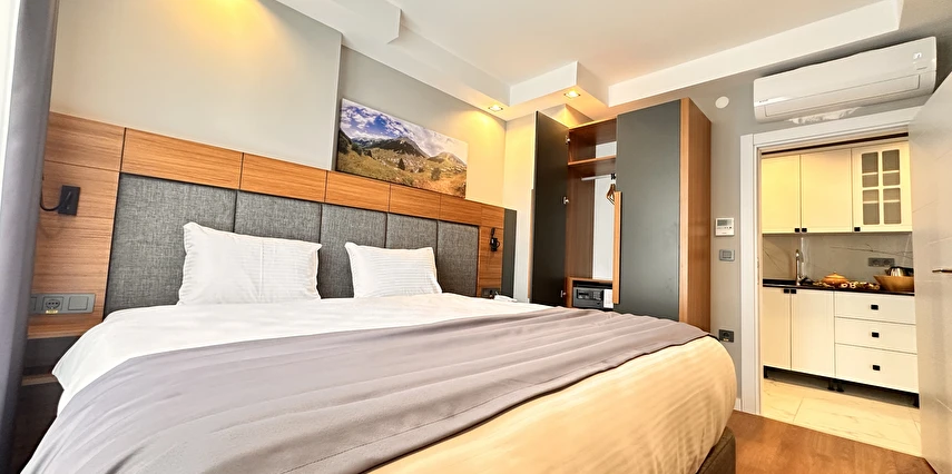 Her biri mutfak, yatak odası, oturma odası ve banyodan oluşan apart odalar; ev konforunu otel hizmetiyle birleştirerek hem kısa hem uzun süreli konaklamalar için ideal bir seçenek oluşturmaktadır.