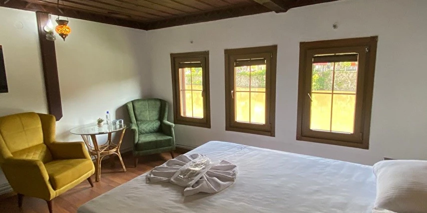 Özenle dekore edilmiş odalarımız; konforlu yataklar, modern olanaklar ve zarif detaylarla donatılmıştır. Sabahları yöresel ve taze ürünlerle hazırlanan kahvaltımızla güne enerjik bir başlangıç yapabilir, gün boyunca sakin bahçemizde dinlenebilir veya çevredeki doğal ve kültürel güzellikleri keşfedebilirsiniz.