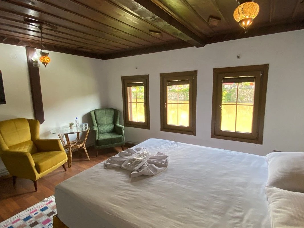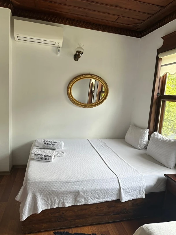 Daha Fazla GösterŞehrin gürültüsünden uzak, doğanın ve huzurun kalbinde konumlanan Gönül Sefası Butik Otel, misafirlerine samimi, konforlu ve unutulmaz bir konaklama deneyimi sunuyor. Adını aldığı gibi, burada her an gönül rahatlığı ve keyif dolu bir atmosfer sizi karşılar.
