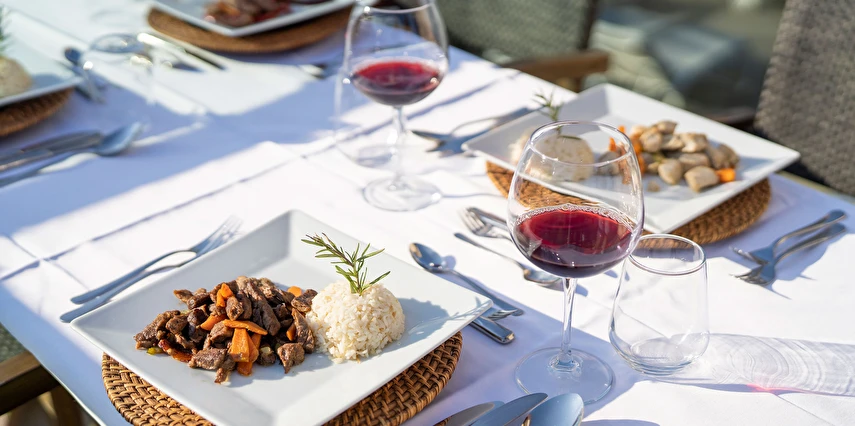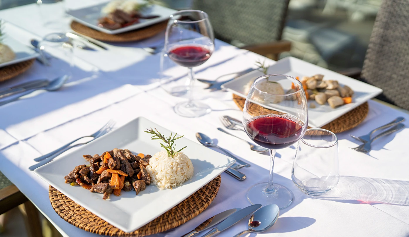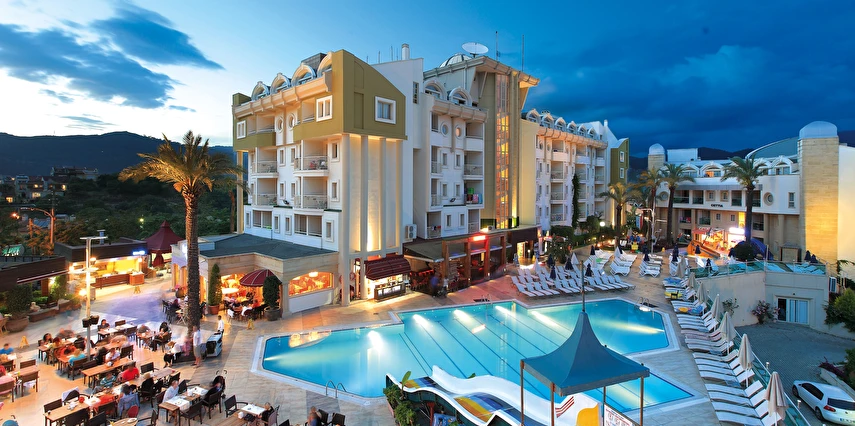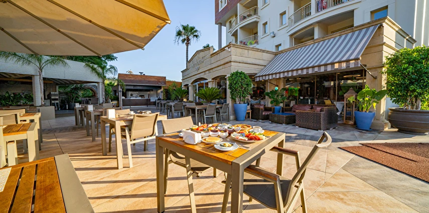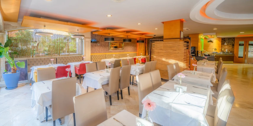 Sabah kahvaltısı, öğle ve akşam yemekleri açık büfe olup, tesisin belirlemiş olduğu markalar dahilinde yerli alkollü ve alkolsüz içecekler 10:00 ile 23:00 saatleri arasında ücretsizdir.