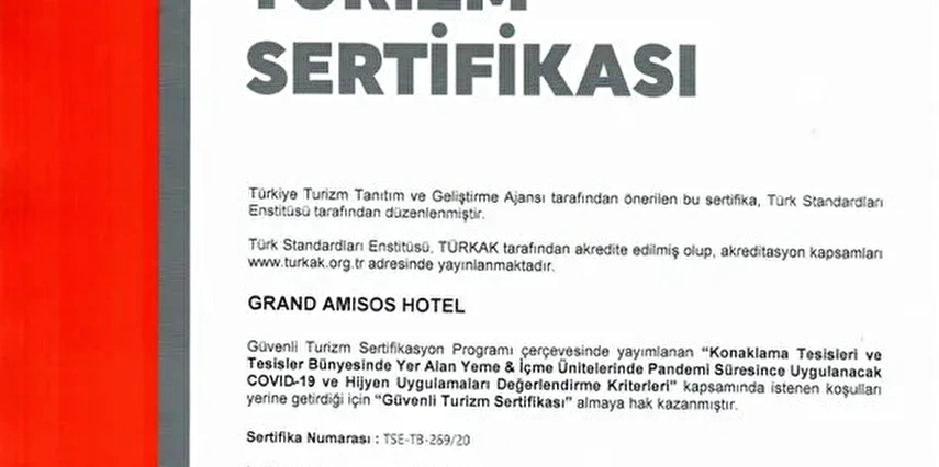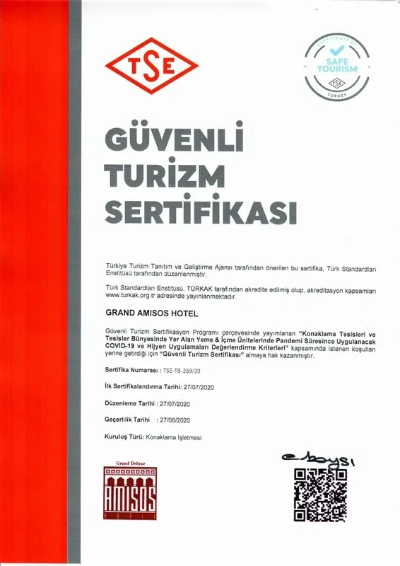 Amisos Hotel 300 kişilik yatak kapasitesi, A'la Carte Restaurant, Toplantı ve Konferans Salonları, Fitness Salonu, Türk Hamamı, açık ve kapalı Yüzme Havuzu, düğün, davet ve çeşitli organizasyonlarınız için hazırlanmış salonları ile ziyaretçilerinin konforu ve rahatı düşünülerek tasarlanmıştır.