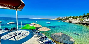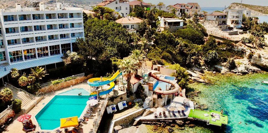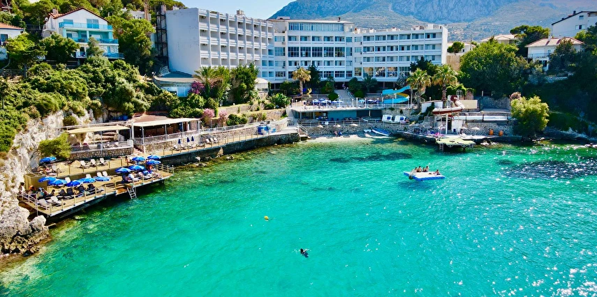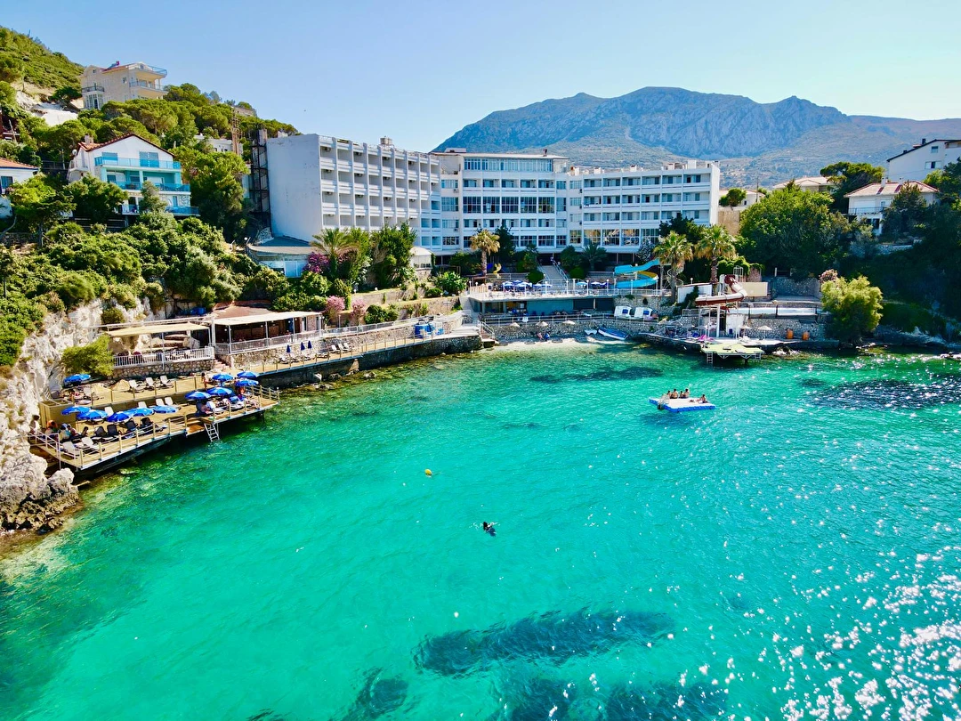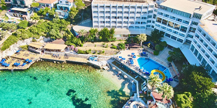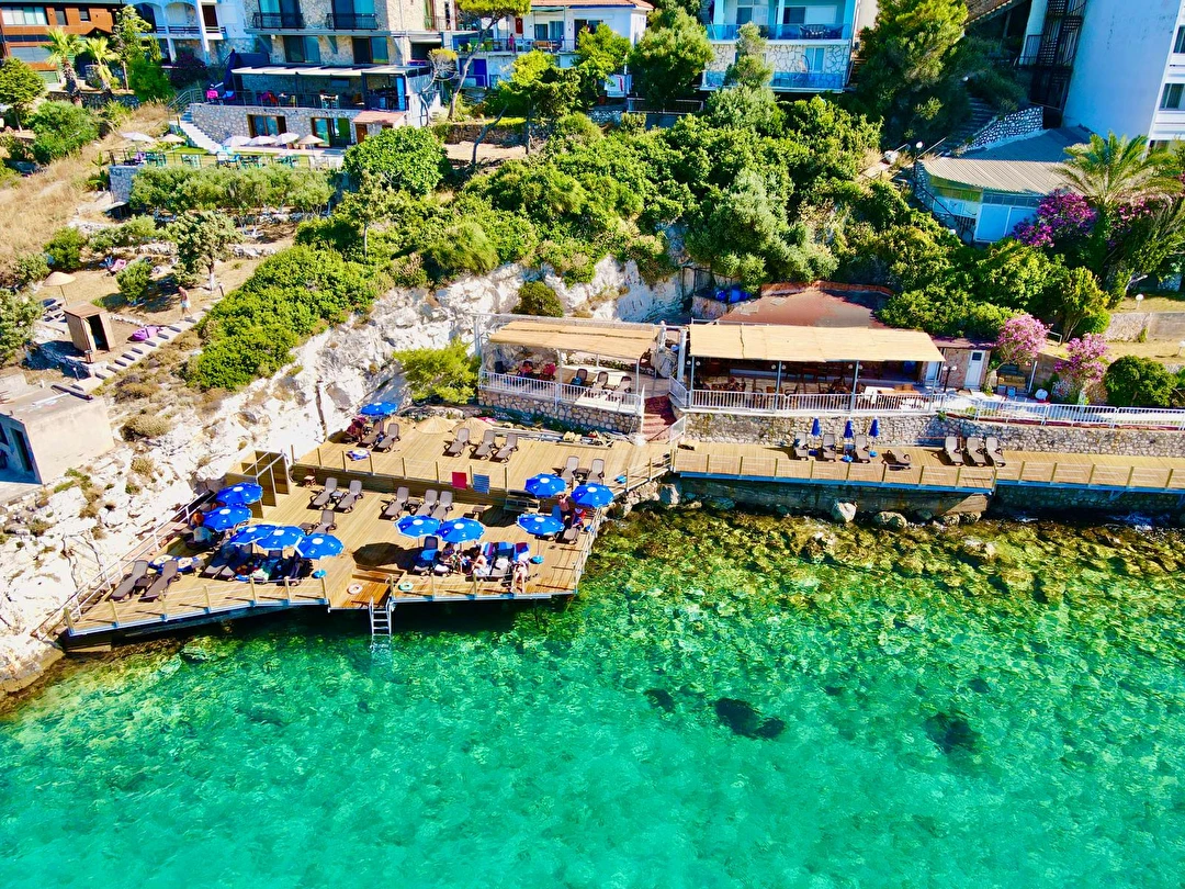 Denize sıfır, mavi bayraklı Akvaryum Koyu'nda deniz manzaralı havuzları ile sizlerin güzel bir tatil yaşaması için özenle hazırlanmış, gün içerisinde deniz üzerinde bulunan iskelesi ve antik tiyatro alanı kıyısı ile Akvaryum Koyu'nun tadını çıkarabilirsiniz.