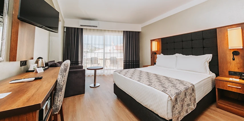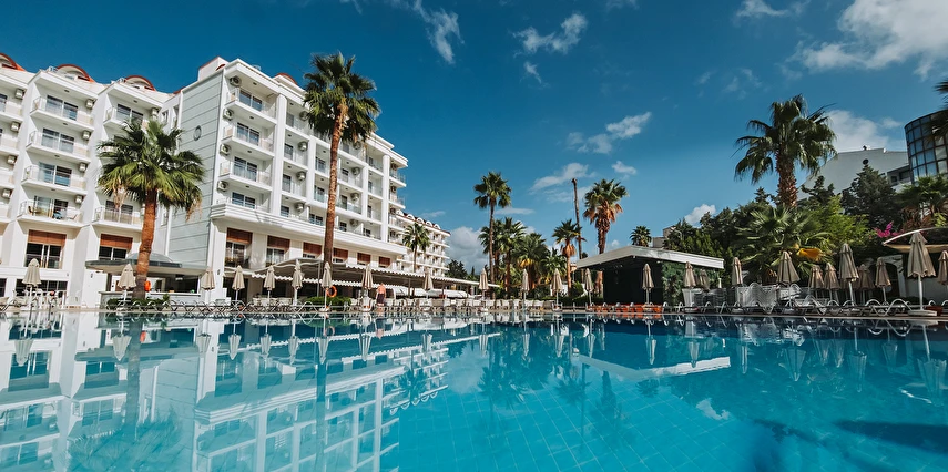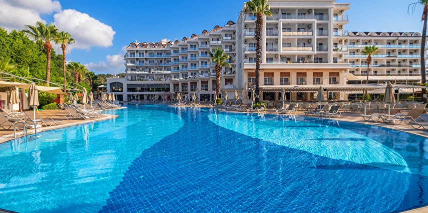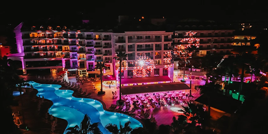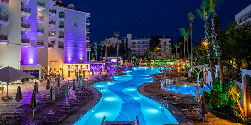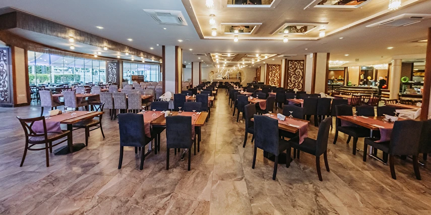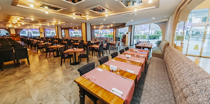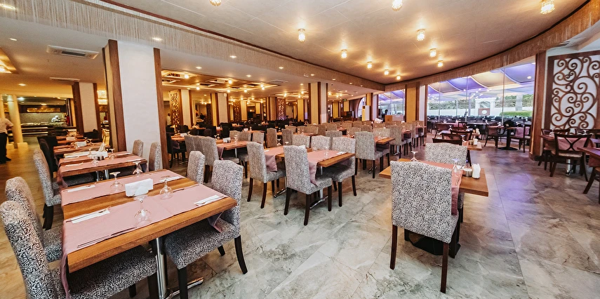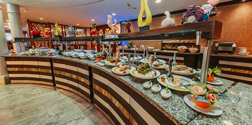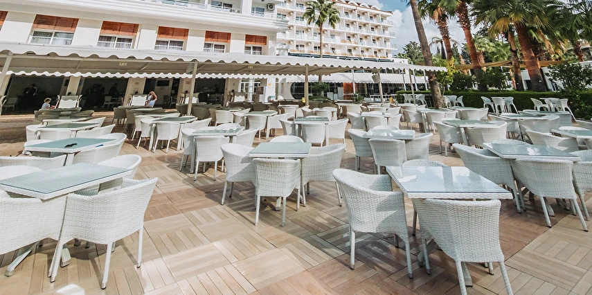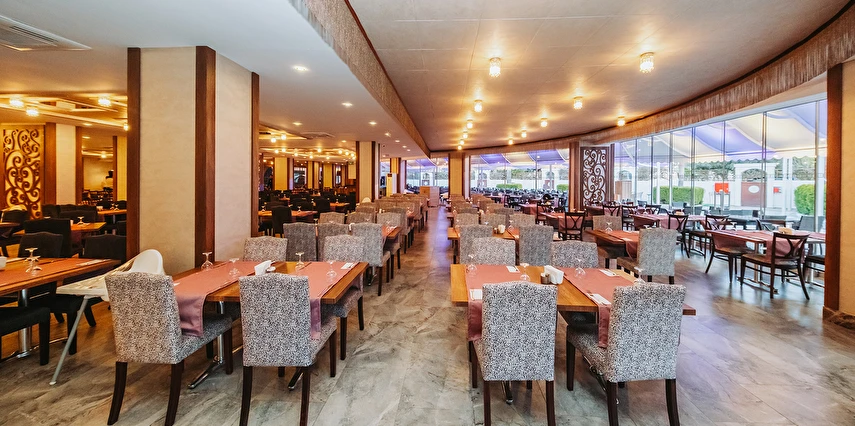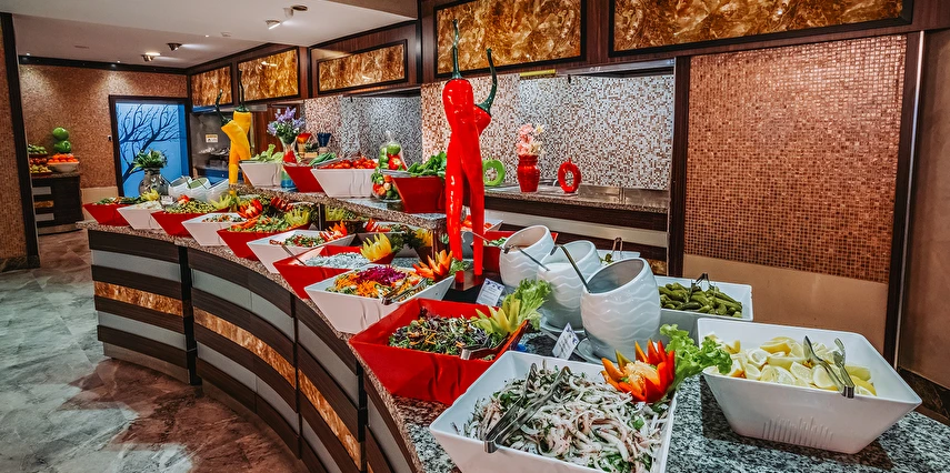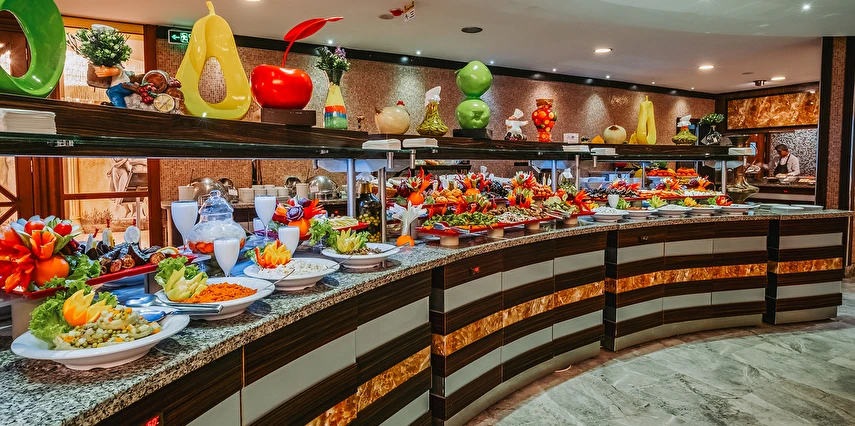 Sabah kahvaltısı, öğle ve akşam yemekleri açık büfe olup tesisin belirlediği markalar dahilinde yerli alkollü ve alkolsüz içecekler 10:00 ile 00:00 saatleri arasında ücretsizdir. Tüm barlar self servistir.