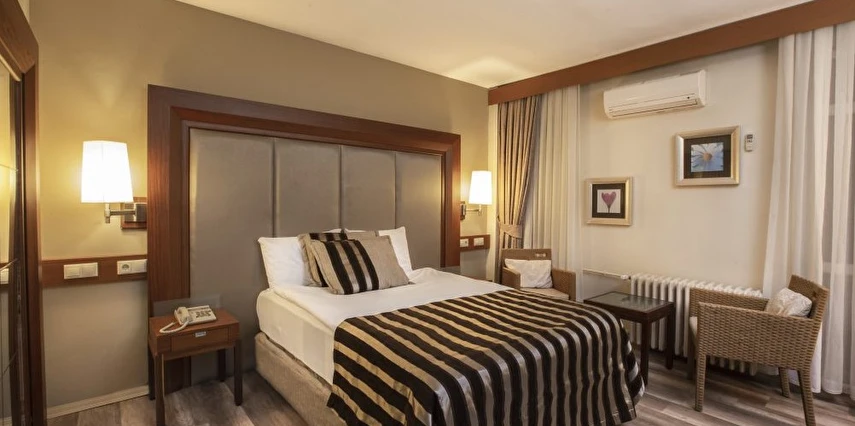 Grand Terme Otel’in ferah ve modern odaları, termal tatil konforunu şehir oteli rahatlığıyla birleştirir.
