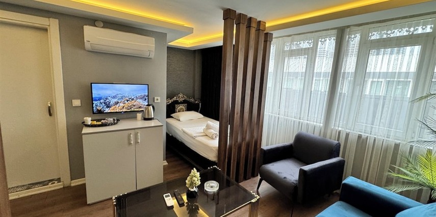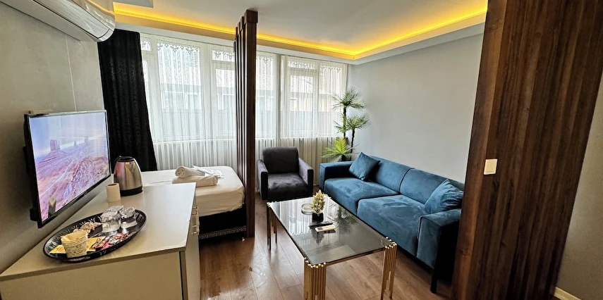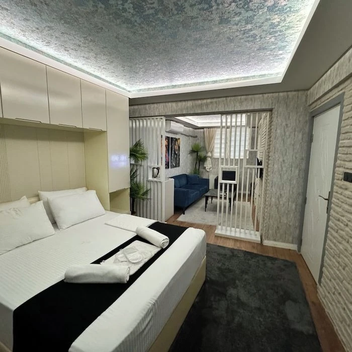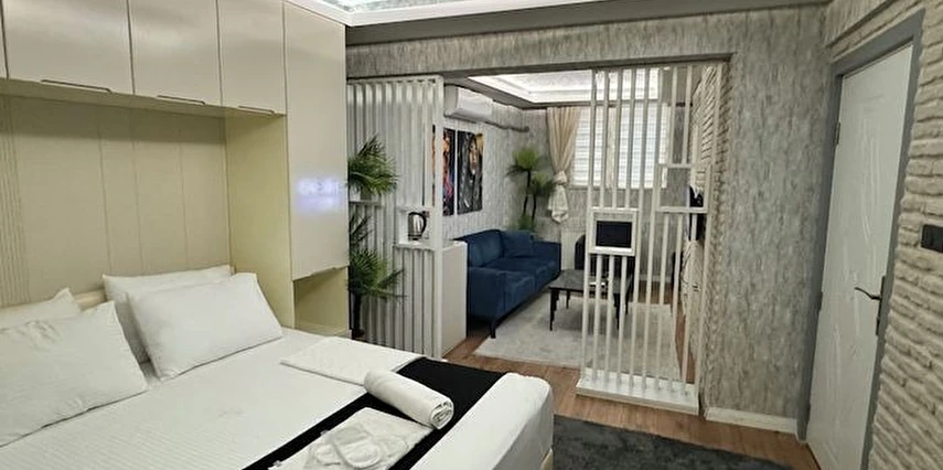 Daha Fazla GösterGrani Suit Otel, toplam 10 odasıyla Nilüfer Bursa'da 2021 Temmuz ayında faaliyete başlamıştır. Daireler 1+1 ve 1+0 stüdyodan oluşmaktadır. Dairelerimizde; klima, Wi-Fi, Smart TV, uydu yayın, çay kahve seti, banyo, duş, havlu seti, terlik, banyo buklet malzemeleri gibi olanaklar mevcuttur.