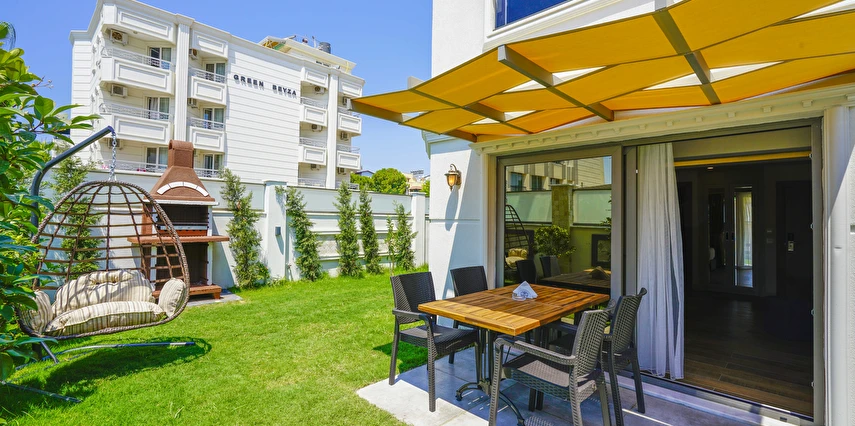 Green Beyza Suites, Türkiye'nin turizm cenneti Antalya Lara' da; falezler üzerine konumlanmış olup, denize 50 mt mesafededir.Akdeniz’den ilham alan ve standartların ötesinde bir konsept sunan otelimiz, şehir ile iç içe unutulmaz bir konaklama deneyimi için sizleri bekliyor.