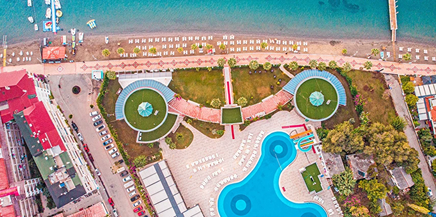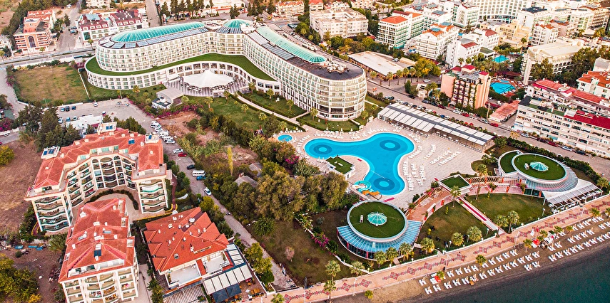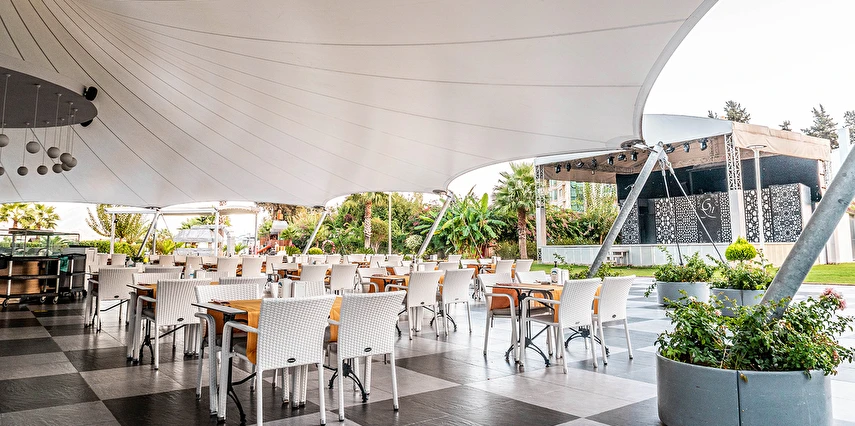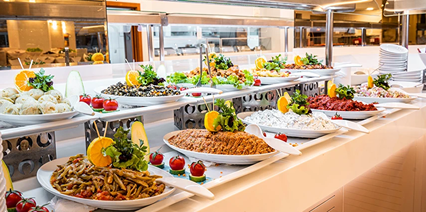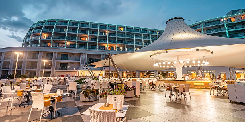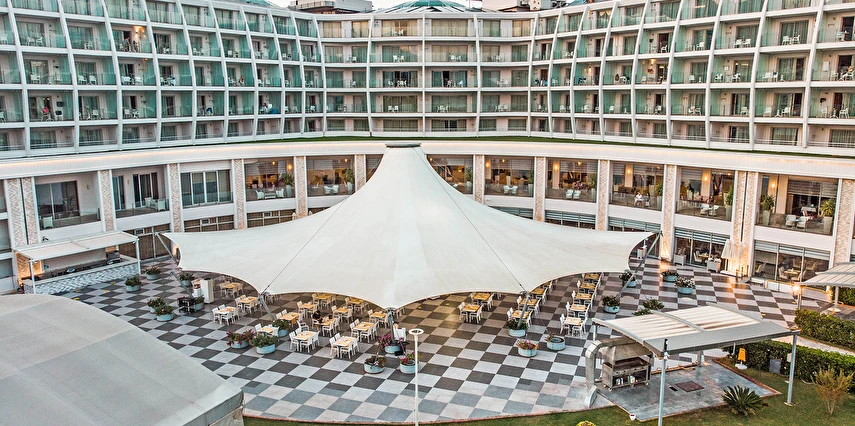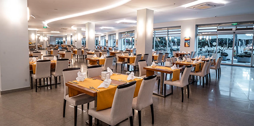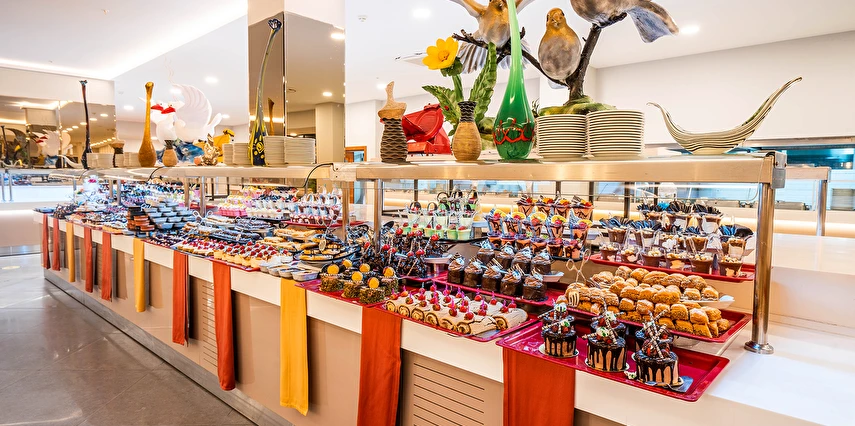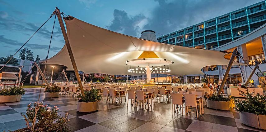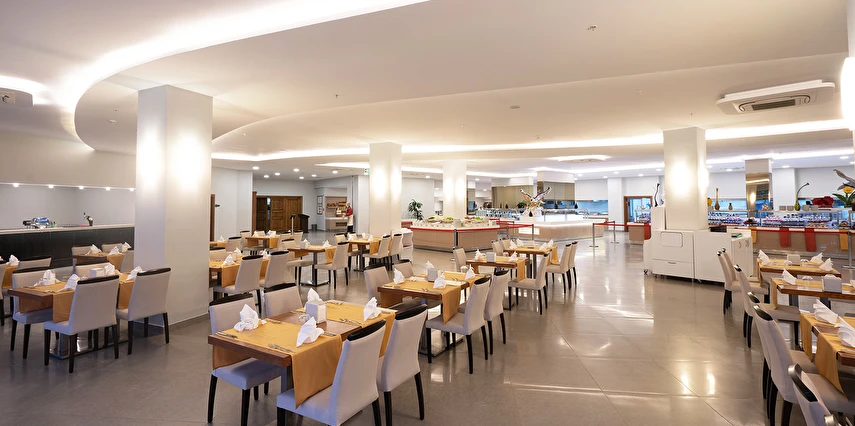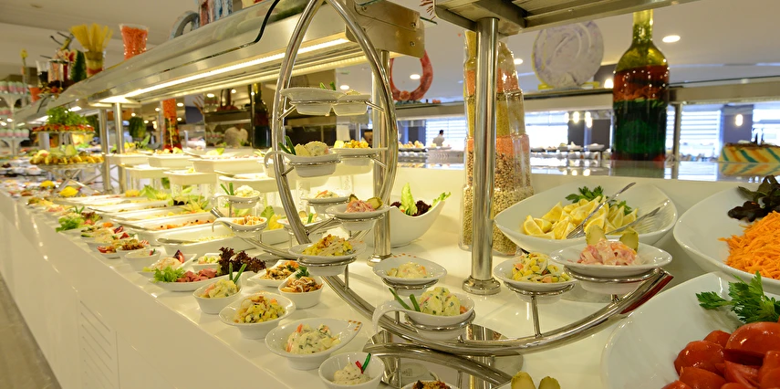 Her Şey Dahil Konseptinde; Sabah kahvaltısı, öğle ve akşam yemekleri açık büfe olup, tesisin belirlemiş olduğu markalar dahilinde yerli içecekler 10:00 ile 24:00 saatleri arasında ücretsizdir. Taze sıkılmış meyve suları, ithal şampanyalar, bütün yerli ve ithal şişe şaraplar, yerli, yabancı alkollü, alkolsüz şişe içkiler, lüks alkoller ücretlidir.