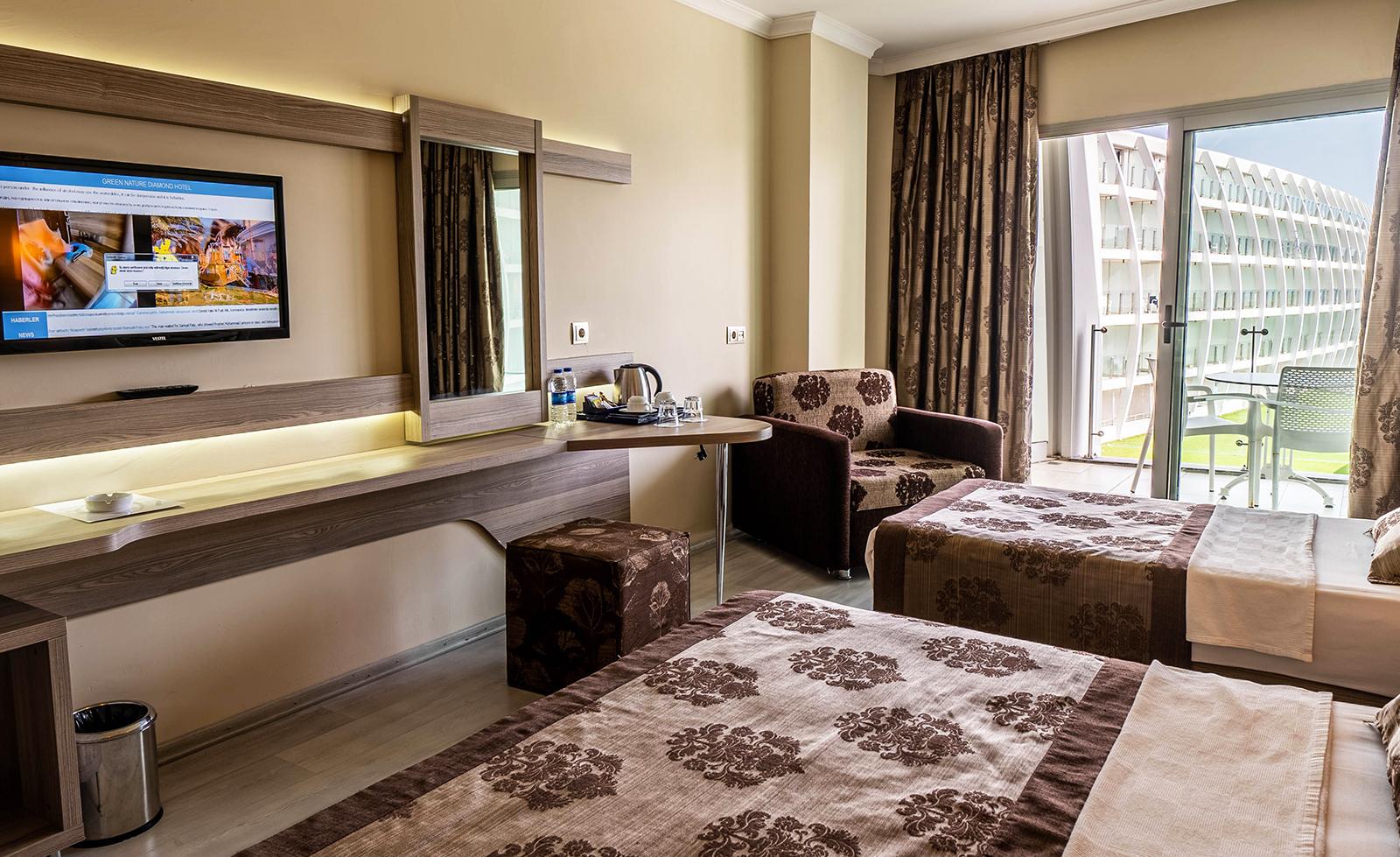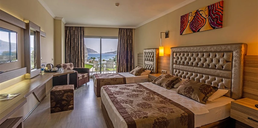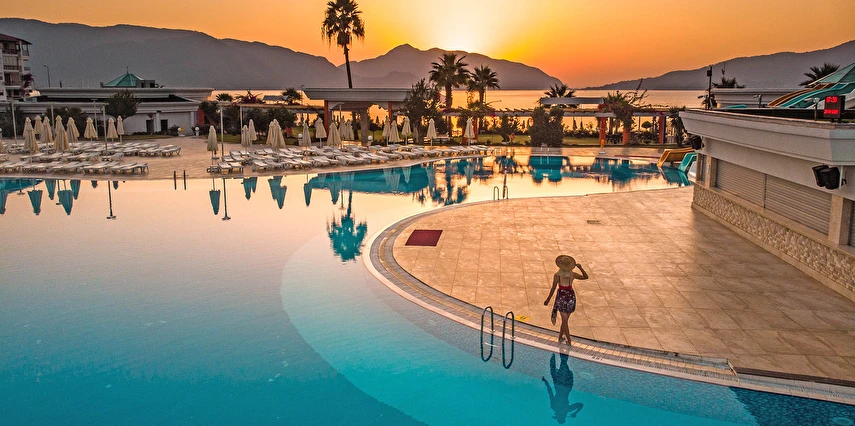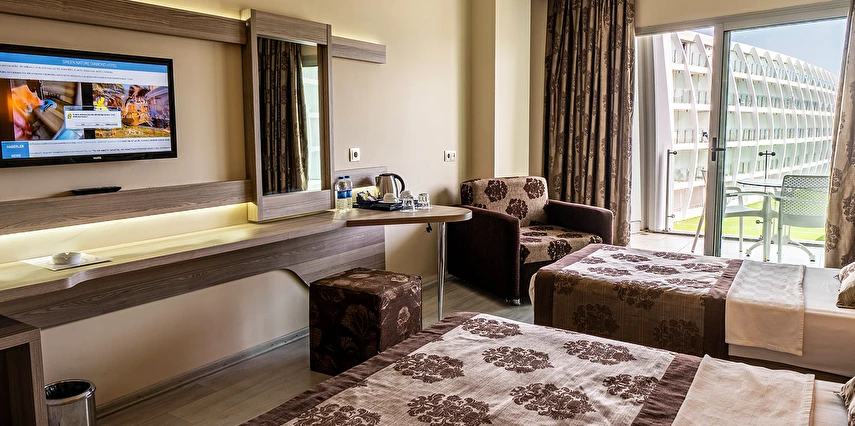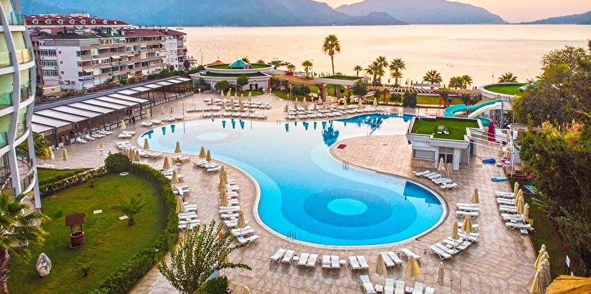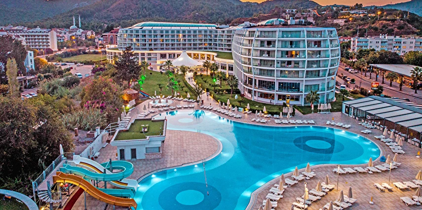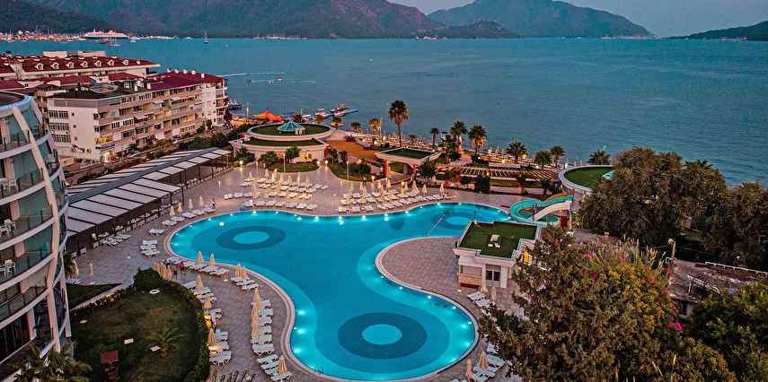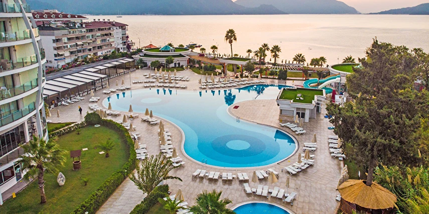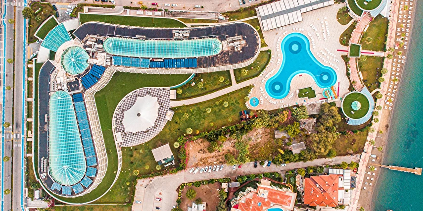 Her Şey Dahil Konseptinde; Sabah kahvaltısı, öğle ve akşam yemekleri açık büfe olup, tesisin belirlemiş olduğu markalar dahilinde yerli içecekler 10:00 ile 24:00 saatleri arasında ücretsizdir. Taze sıkılmış meyve suları, ithal şampanyalar, bütün yerli ve ithal şişe şaraplar, yerli, yabancı alkollü, alkolsüz şişe içkiler, lüks alkoller ücretlidir.