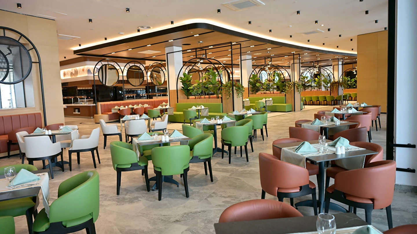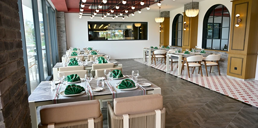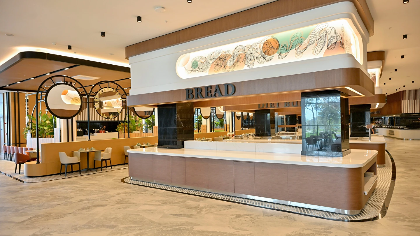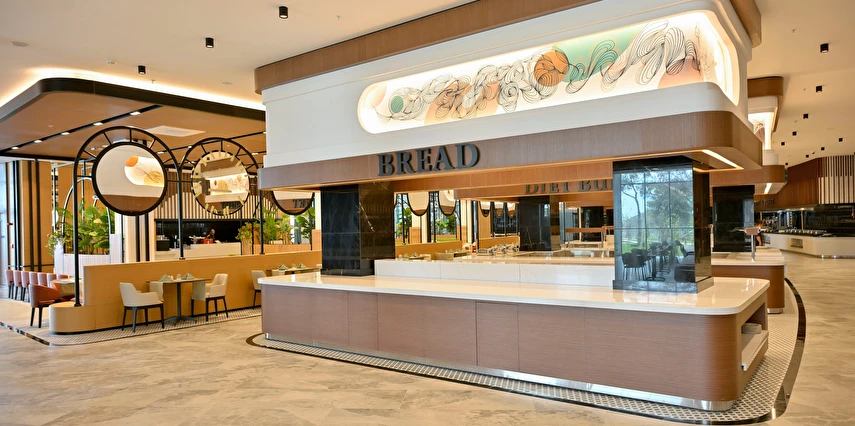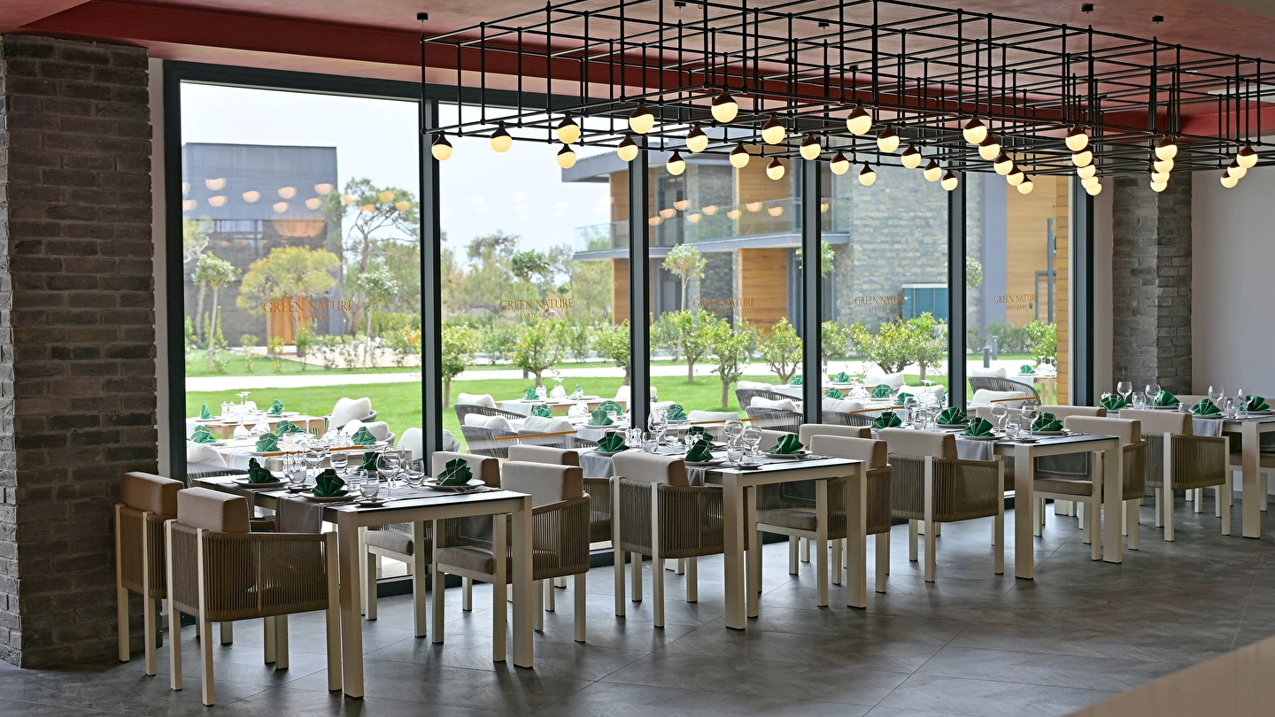 Sabah kahvaltısı, öğle ve akşam yemekleri açık büfe olup tesisin belirlemiş olduğu markalar dahilinde 24 saat ücretsizdir. Kahvaltıda taze sıkılmış portakal suyu ana restoranda sunulmaktadır.