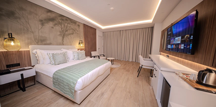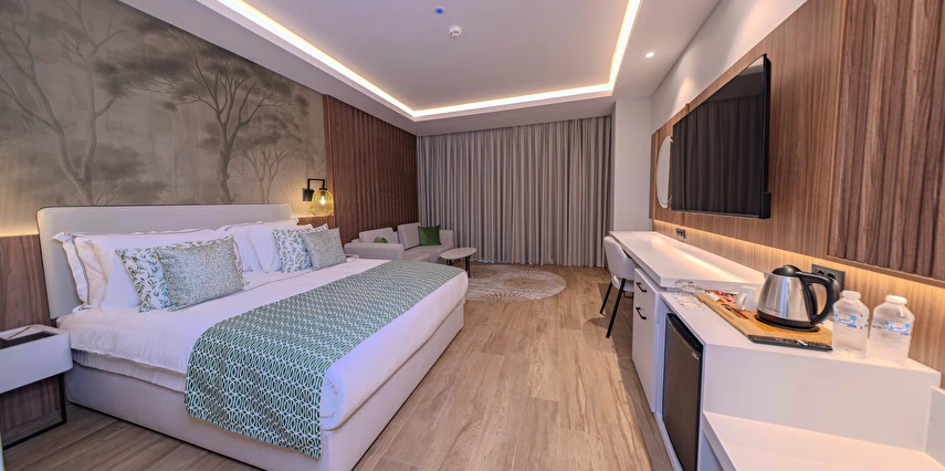 Ücretli Balayı Konsepti: Giriş günü odaya köpüklü şarap, baklava, çerez set up, çikolata tabağı, Red Bull, À la carte restoranlardan birinde akşam yemeği için rezervasyon önceliği,Bornoz - terlik ,Buklet, Otel fotoğrafçısından 2 adet hediye fotoğraf (15x21 ebat, 15 dk çekim süresi ve saat 15:00 e kadar) Yatak süsleme, Spa merkezinde alacakları çiftlere özel, ücretsiz 30 dk lık klasik veya Bali masajı. İstenilen bir gün odaya kahvaltı ikramı ücretli uygulanmaktadır.