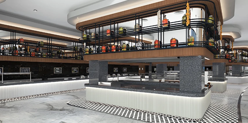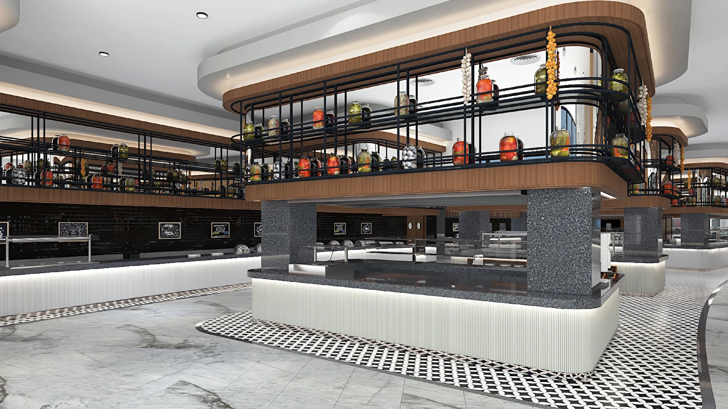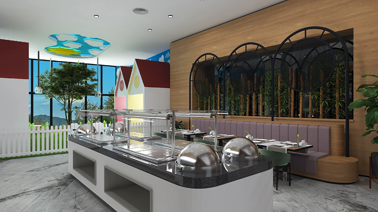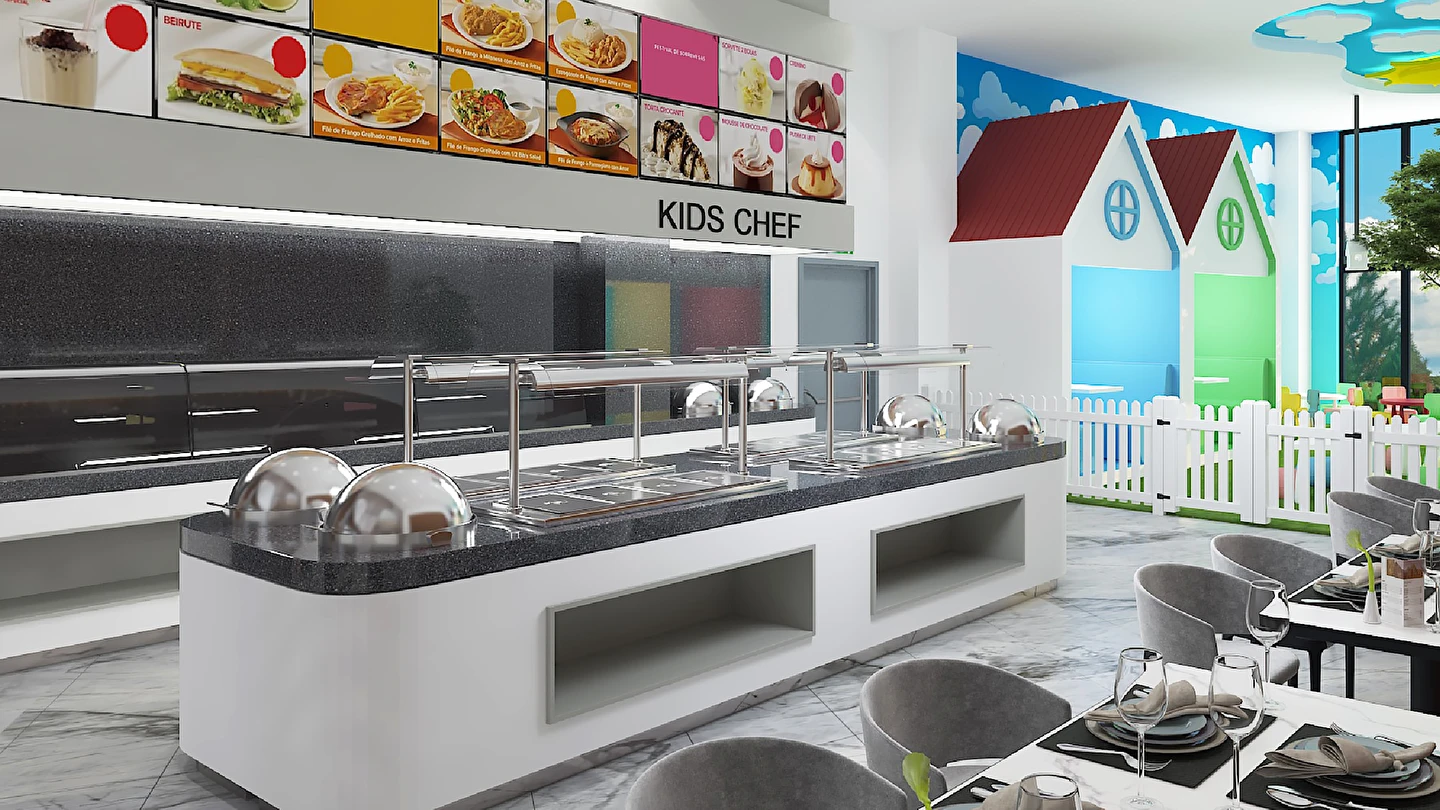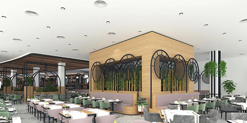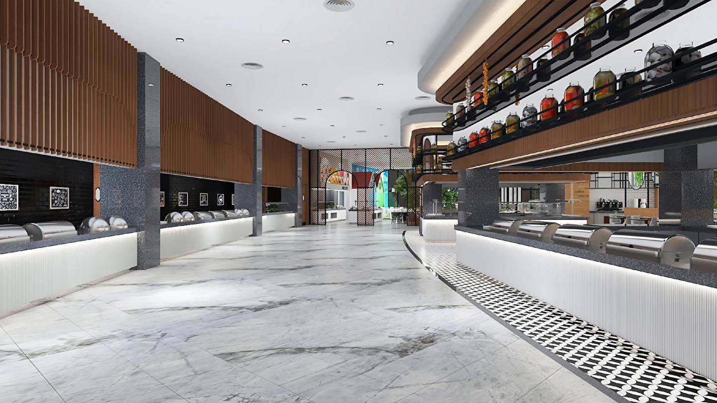 Sabah kahvaltısı, öğle ve akşam yemekleri açık büfe olup tesisin belirlemiş olduğu markalar dahilinde 24 saat ücretsizdir. Kahvaltıda taze sıkılmış portakal suyu ana restoranda sunulmaktadır.
