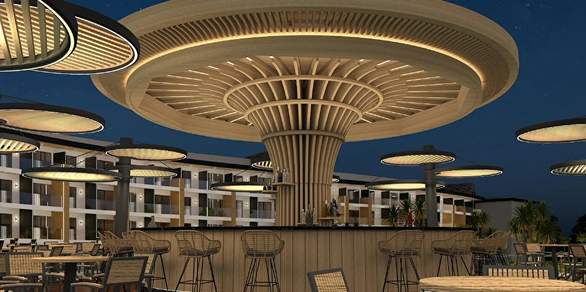 Gazebo: Max. 4 kişi, full mini bar,meyve sepeti, sabahları taze sıkılmış portakal suyu, sipariş vermek koşulu ile yiyecek ve içecek hizmeti ücretlidir.